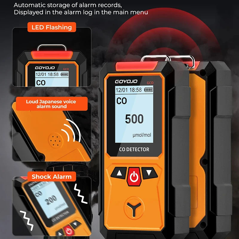 For example, incomplete combustion of natural gas, gas, liquefied petroleum gas, fuel oil, coal; blockage of smoke pipes and exhaust pipes; detection of carbon monoxide in confined spaces with open engines and fires for heating.