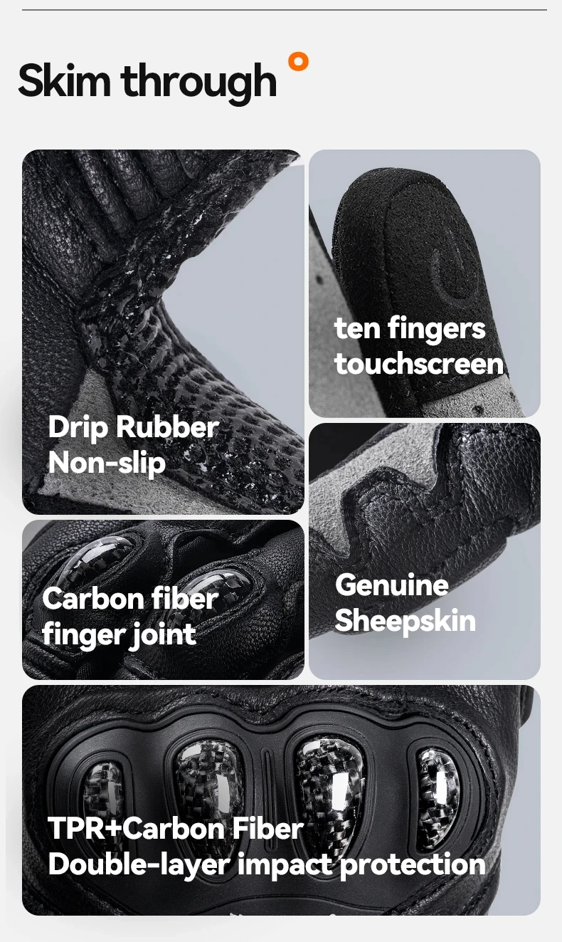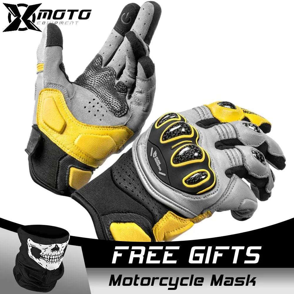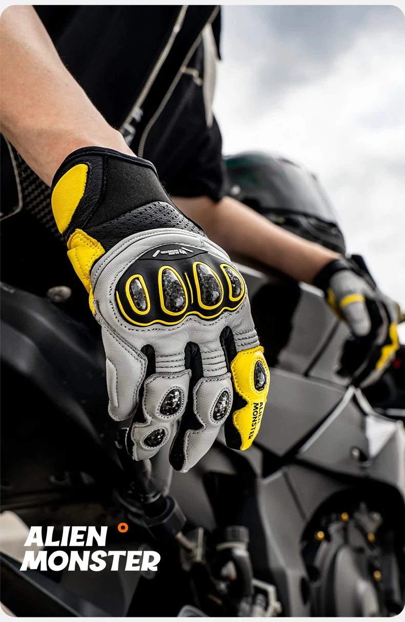 Genuine Leather Wear-resistant Gloves Motocross Anti-fall Cycling Moto Gloves Motorcycle Gloves Carbon Fiber Protective Gloves