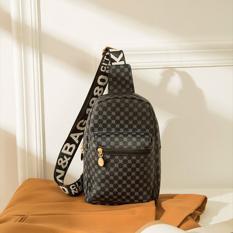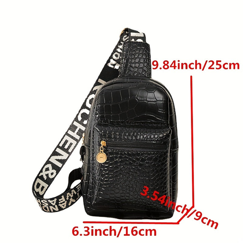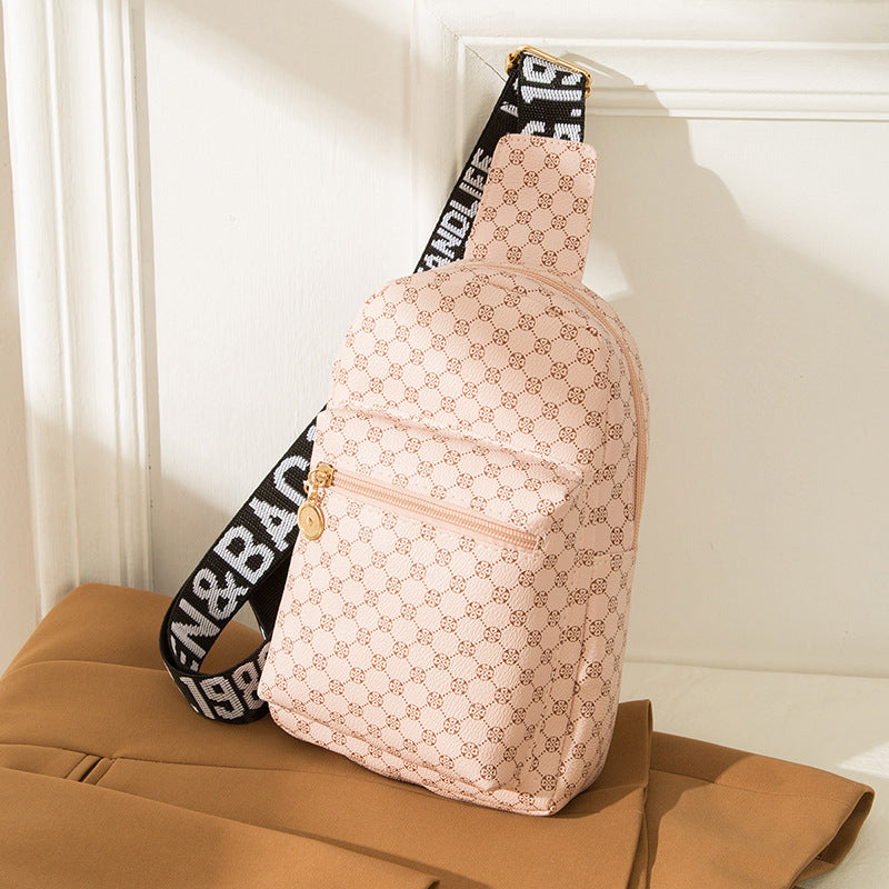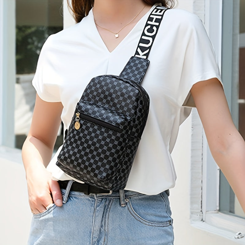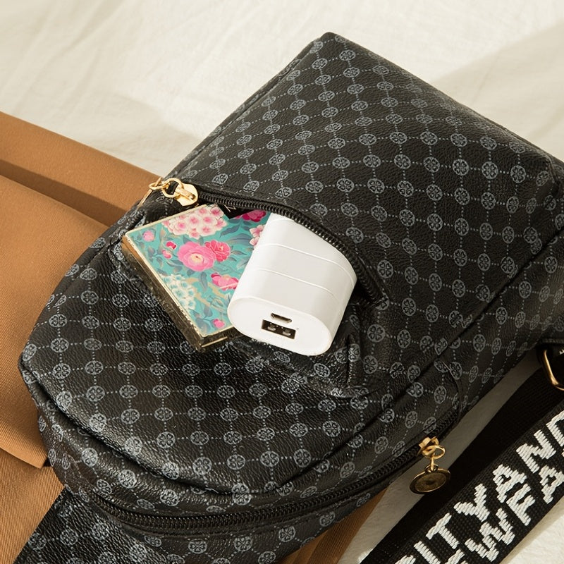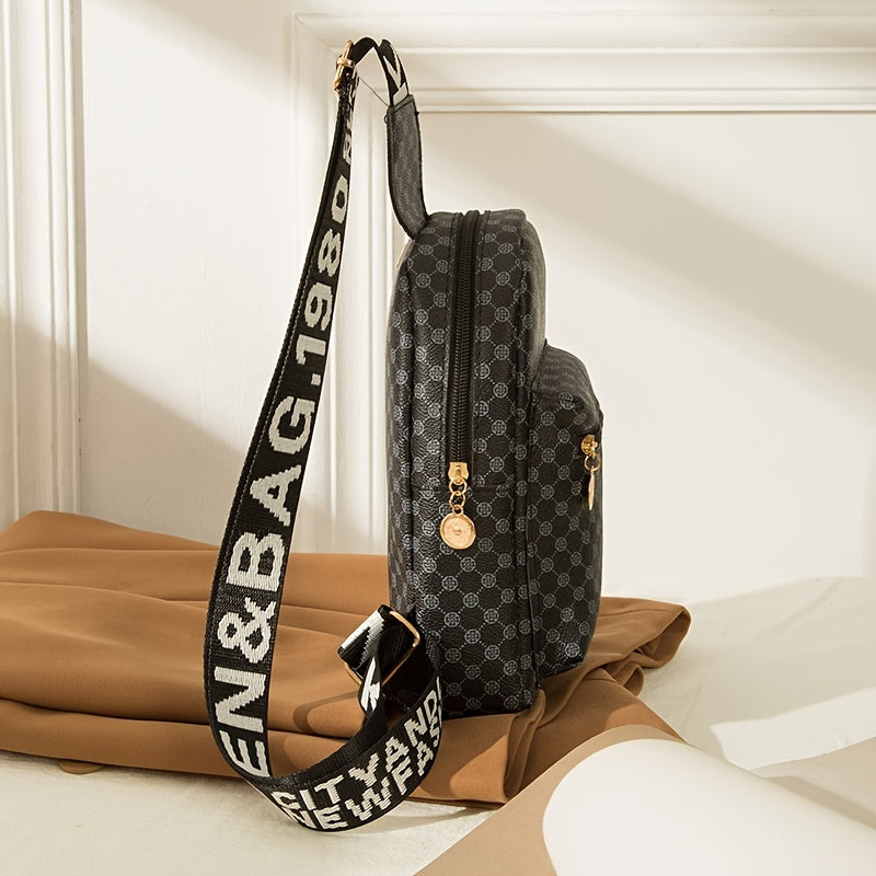 Geometric Graphic Sling Bag, Fashion Shoulder Chest Bag, Wide Strap Multi Zipper Crossbody Purse