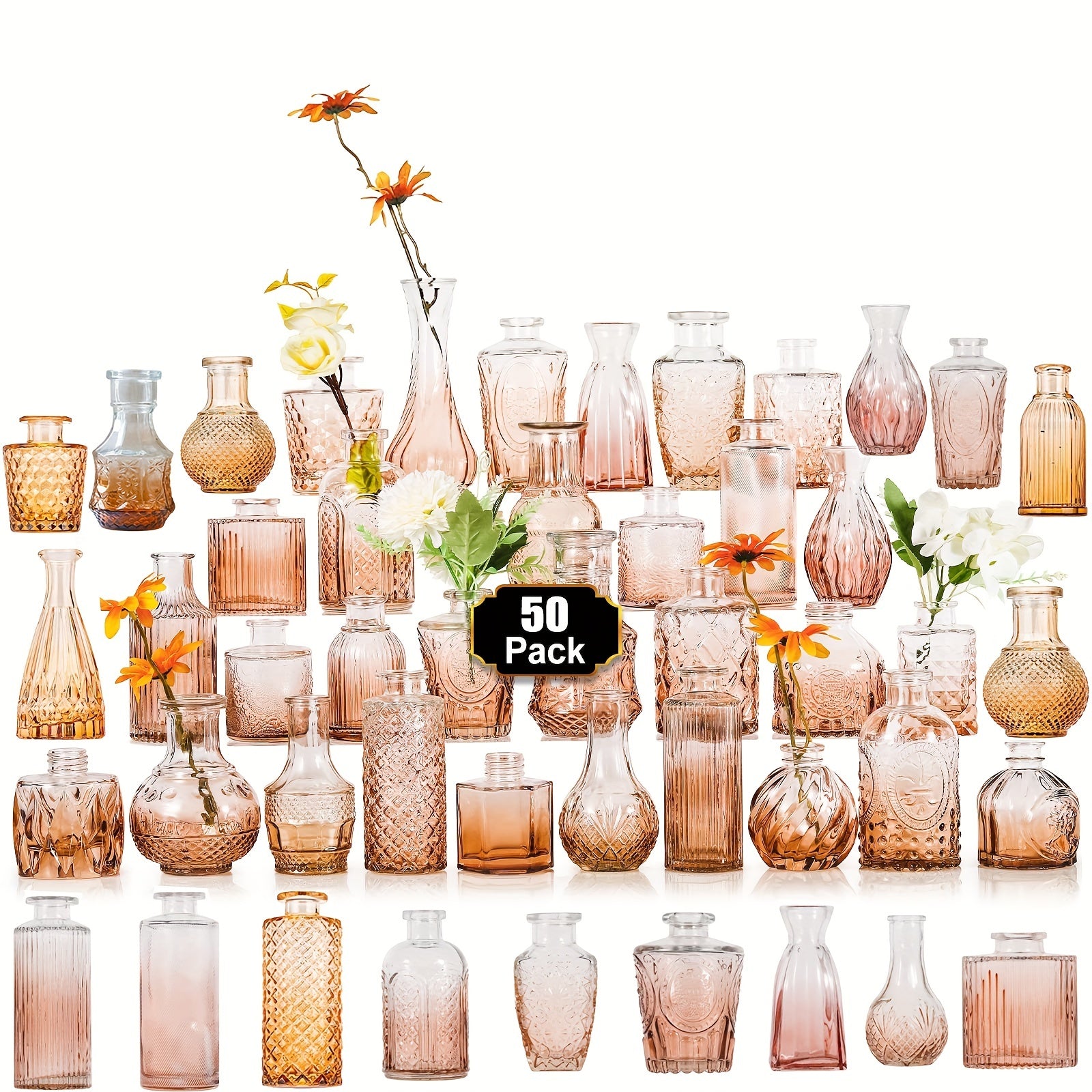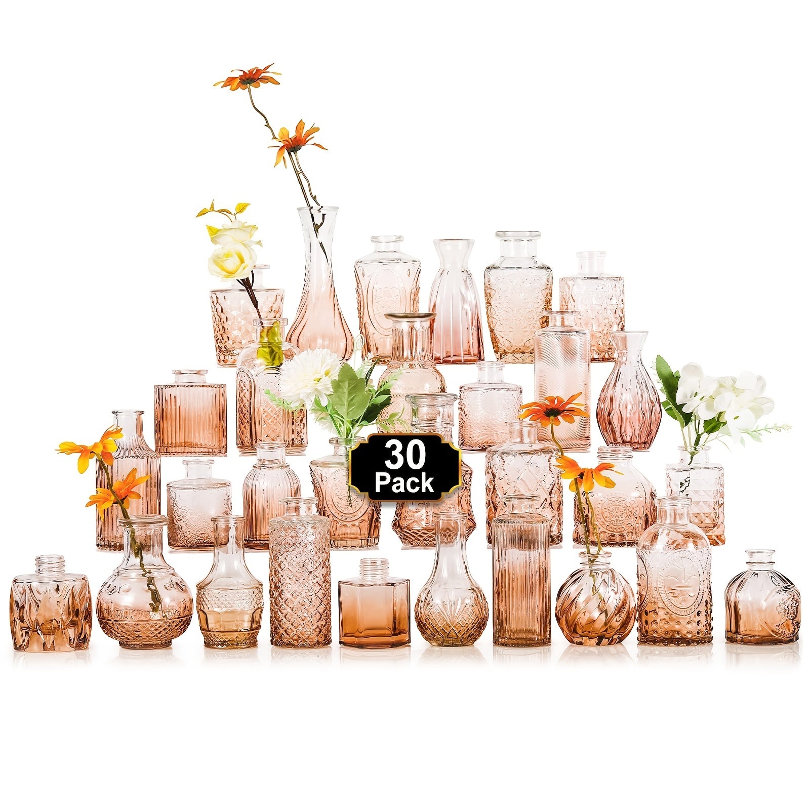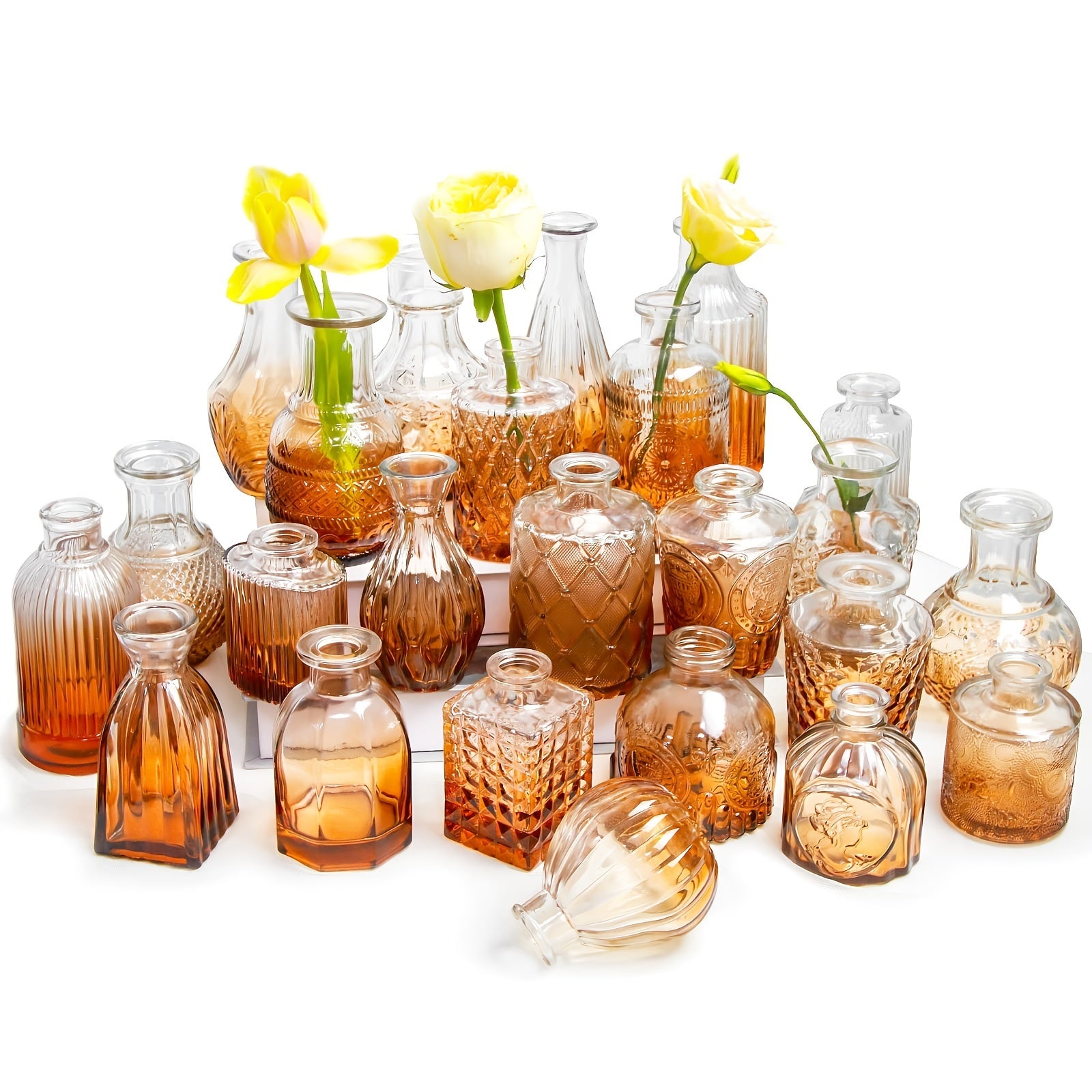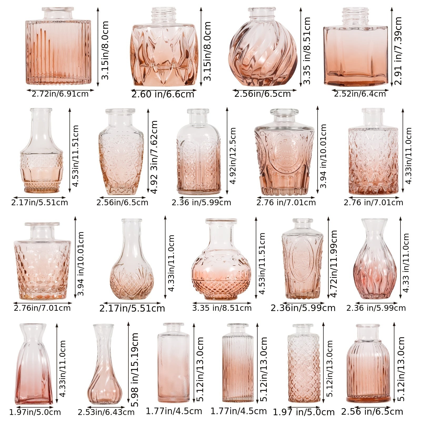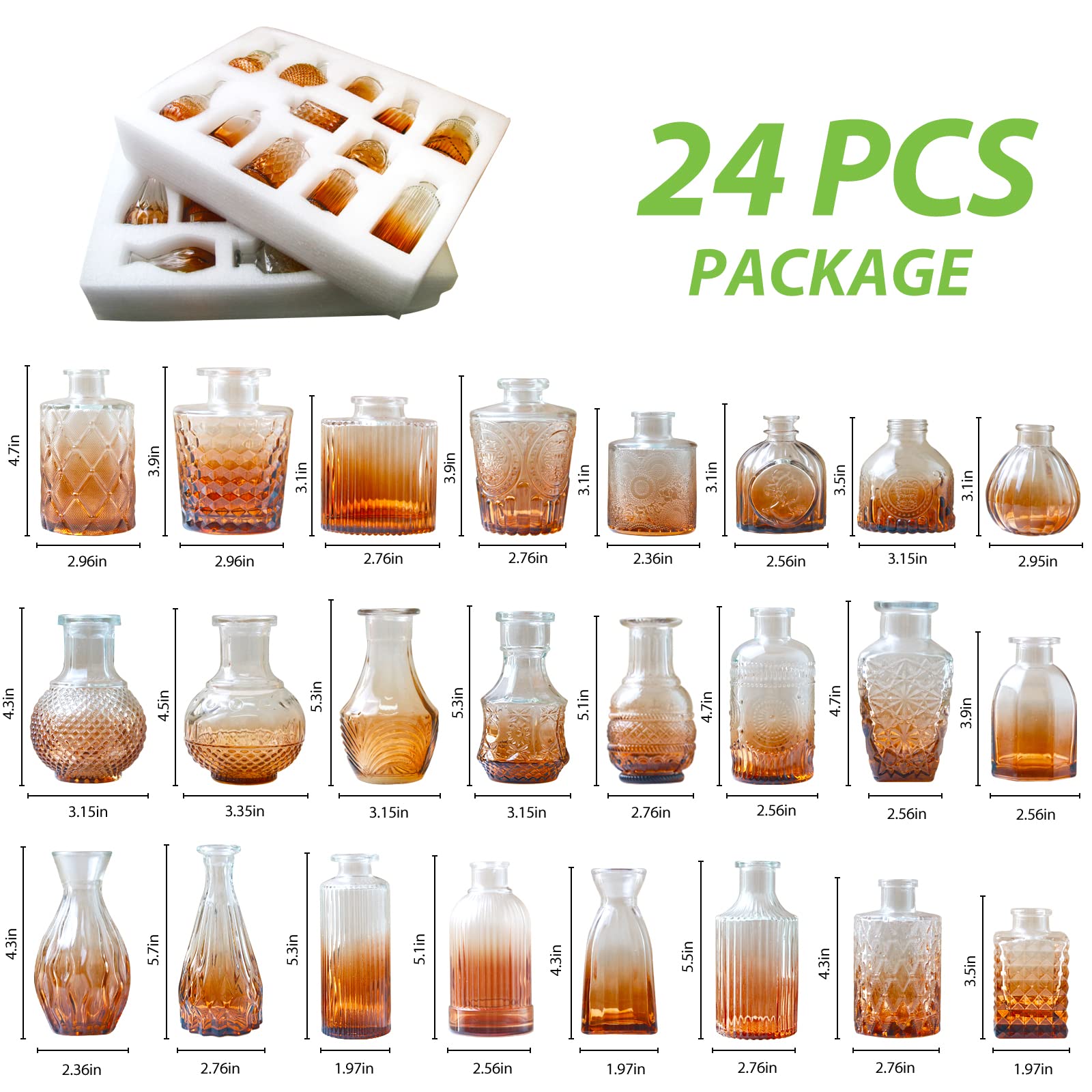 Various size and shapes--small vases for flowers, mini bud vases set of 24 are also charming enough to as a scented diffuser oil bottle or candle hodler. Create your own small glass vase decoration by your idea
