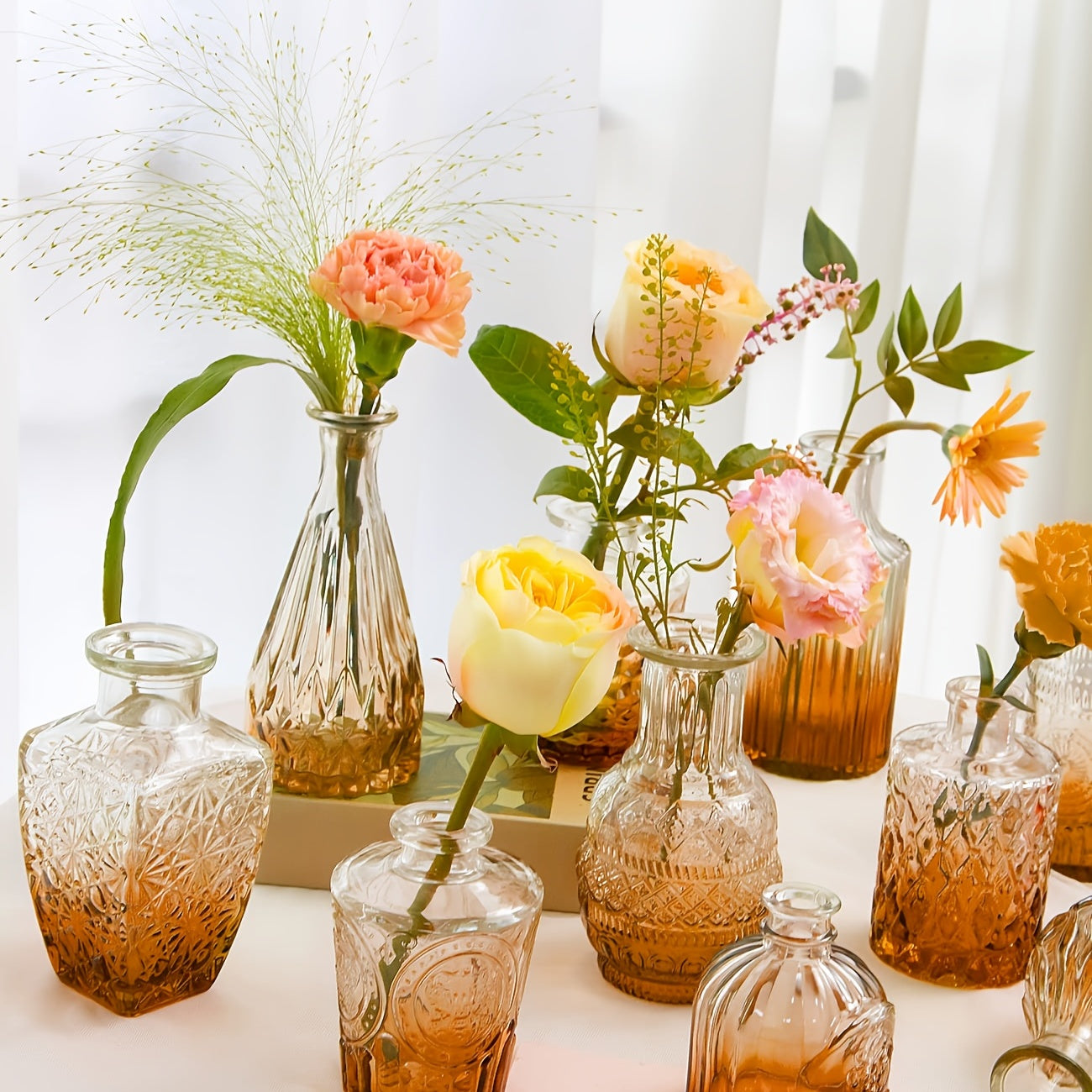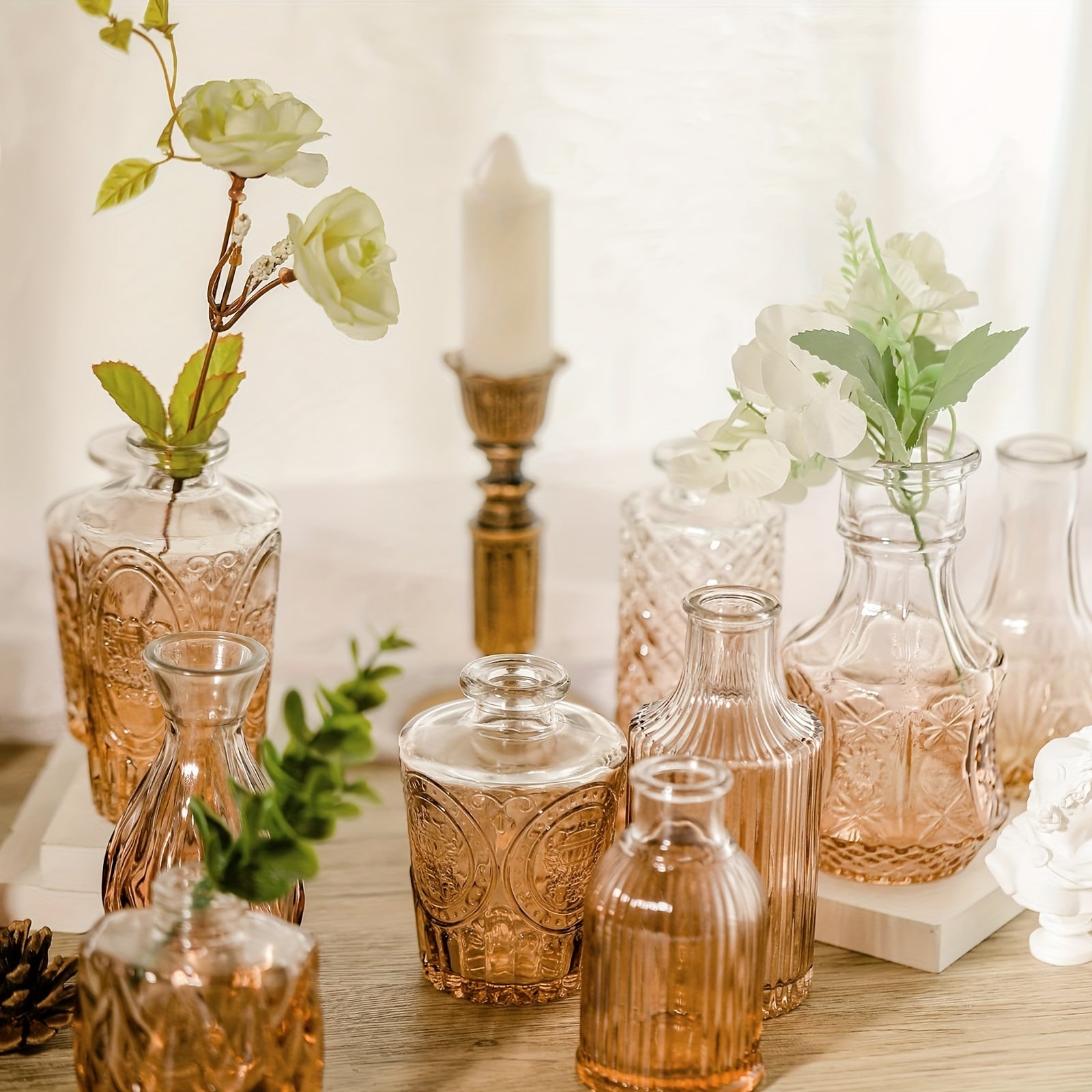 Classic and elegant design--each vintage flower vase bulk is decorated with vintage etching patterns, as wedding&party centerpiece vases for table, propagation jars, festival decorative vase set, hydroponic plants and flowers