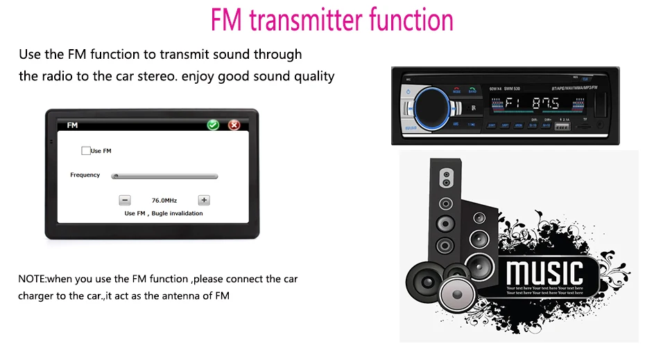 7.,Built-in Hi-Fi speaker, with FM transmission function, navigation voice and music will be sent directly to the car speaker