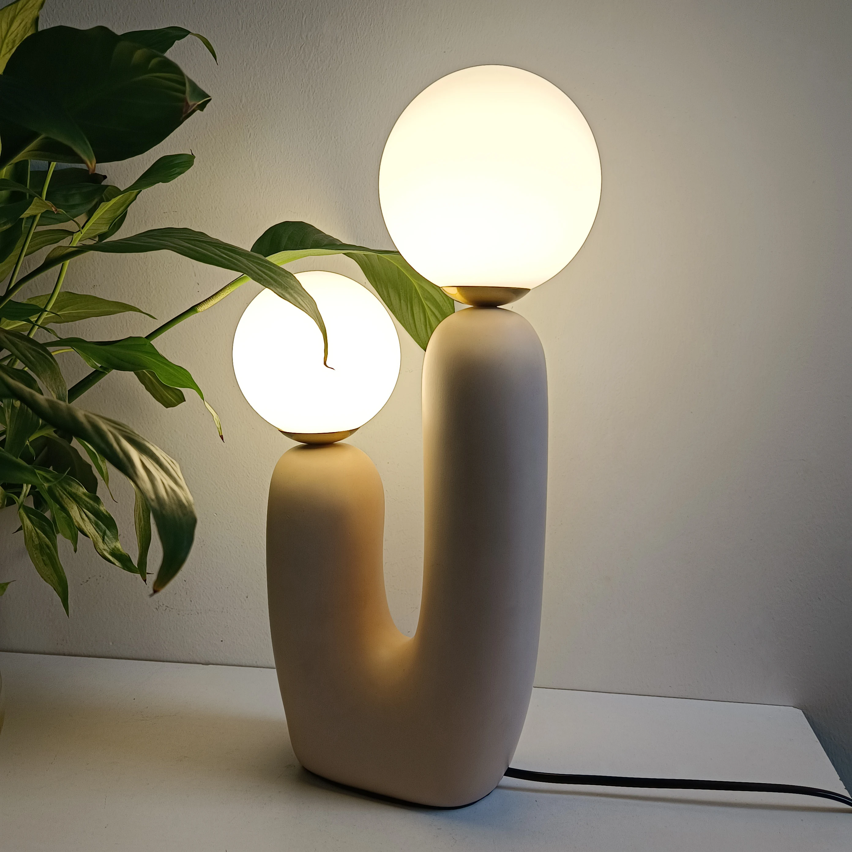 Green Pink Resin Double Frosted Glass Ball Table Lamp