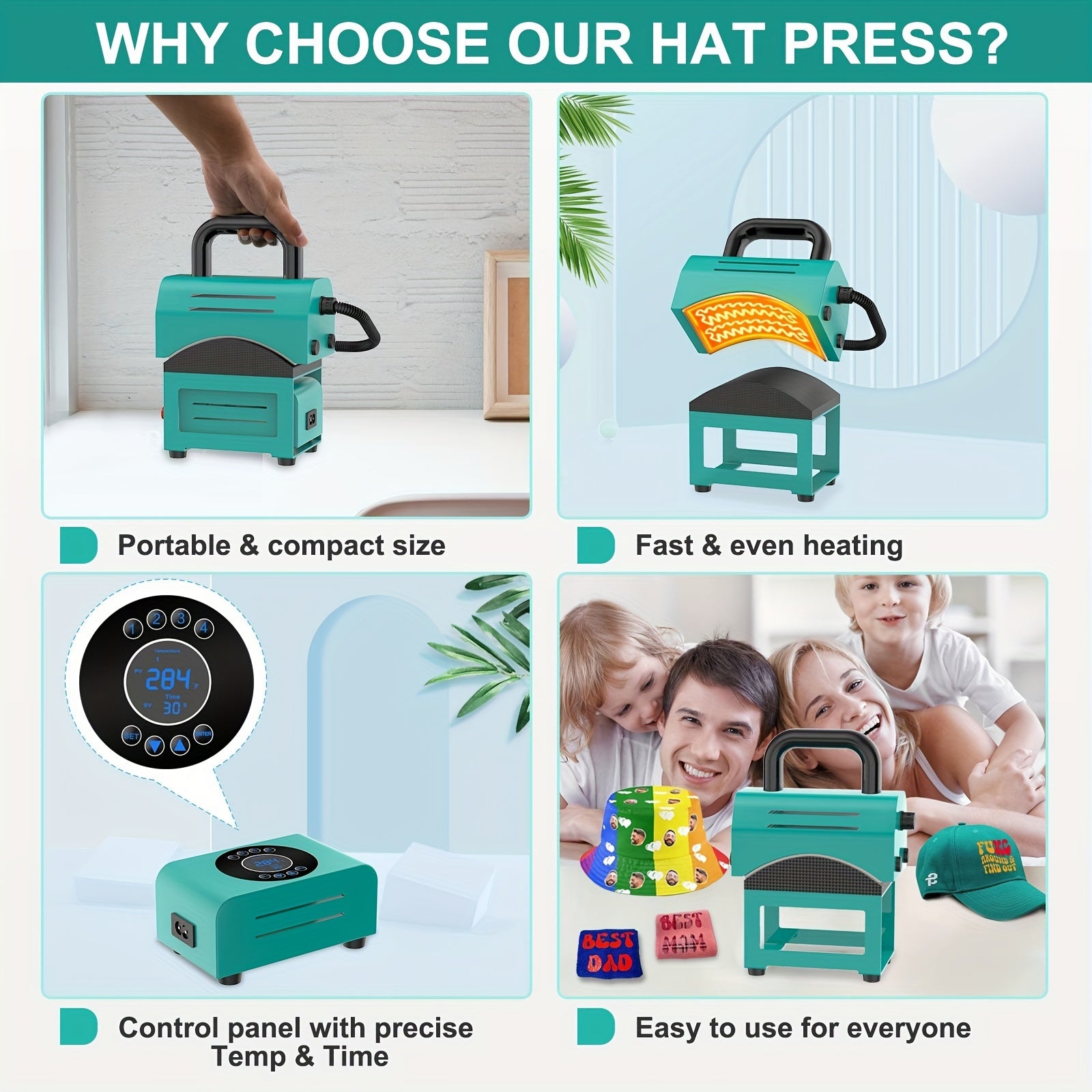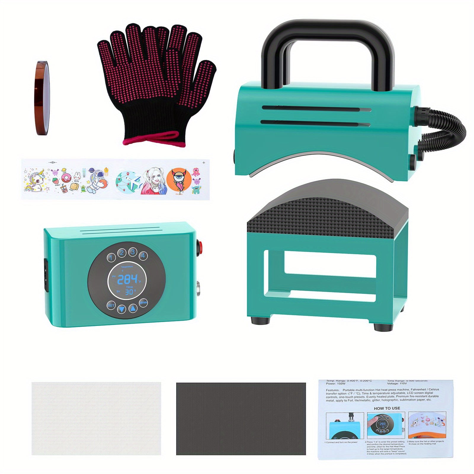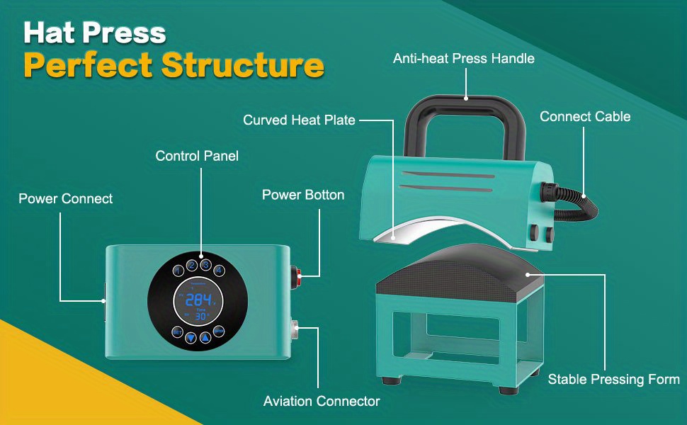 Hat Heat Press Curved Heating Plate And Curved Panel For Easy Press Fit Of Caps 4 Preset Time And Temperature Settings Small Portable Hat Heat Press Machine For Hats Wristband Bags