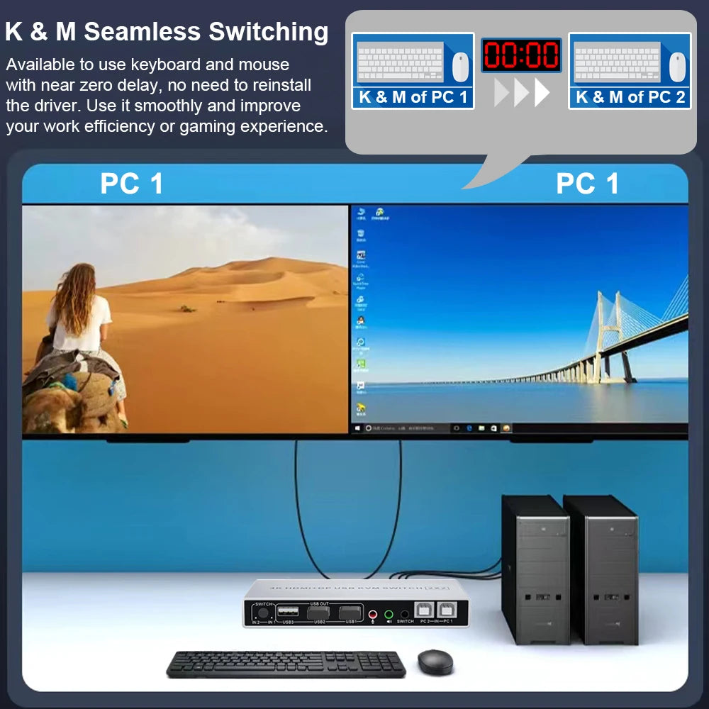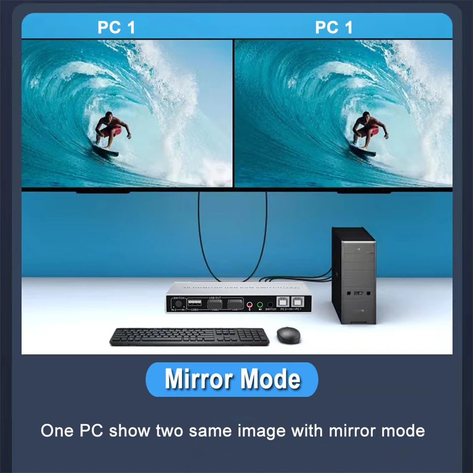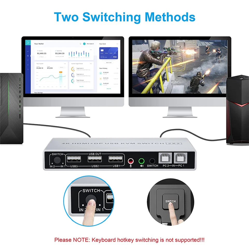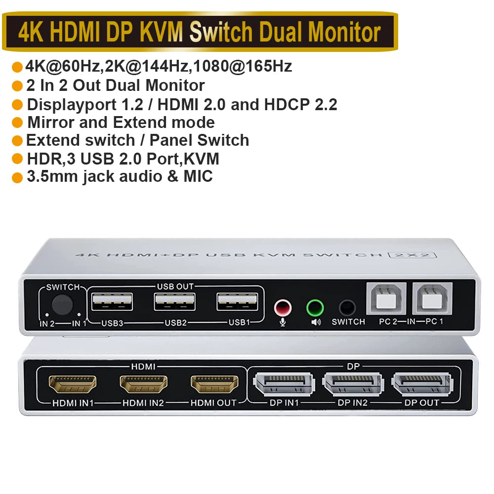 - Product Type: HDMI DP USB 2.0 KVM Switch (2 in 2 out)