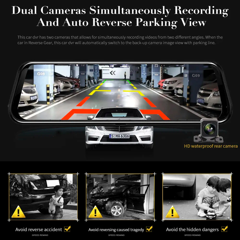 The traditional rear view mirrors just provide limited rear view field, most of time,we need to turn our head back to see more easpecially when we are parking. Streaming media dash cam avoids not only the obstacles of headrests or rear pillars, but also gives roughly 3 times field of vision greater than a standard rear view mirror. What’s more, the visibility is amazing even at night and rainy days.