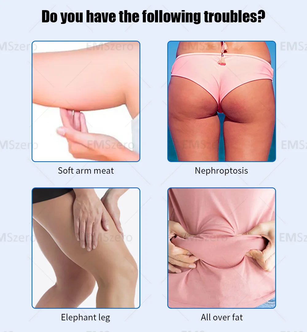 Functions: Body contouring, body slimming, body sculpt, muscle build, fat removal,skin tight, butt lift, muscle build, muscle stimulation,EMS Cellulite Reductions