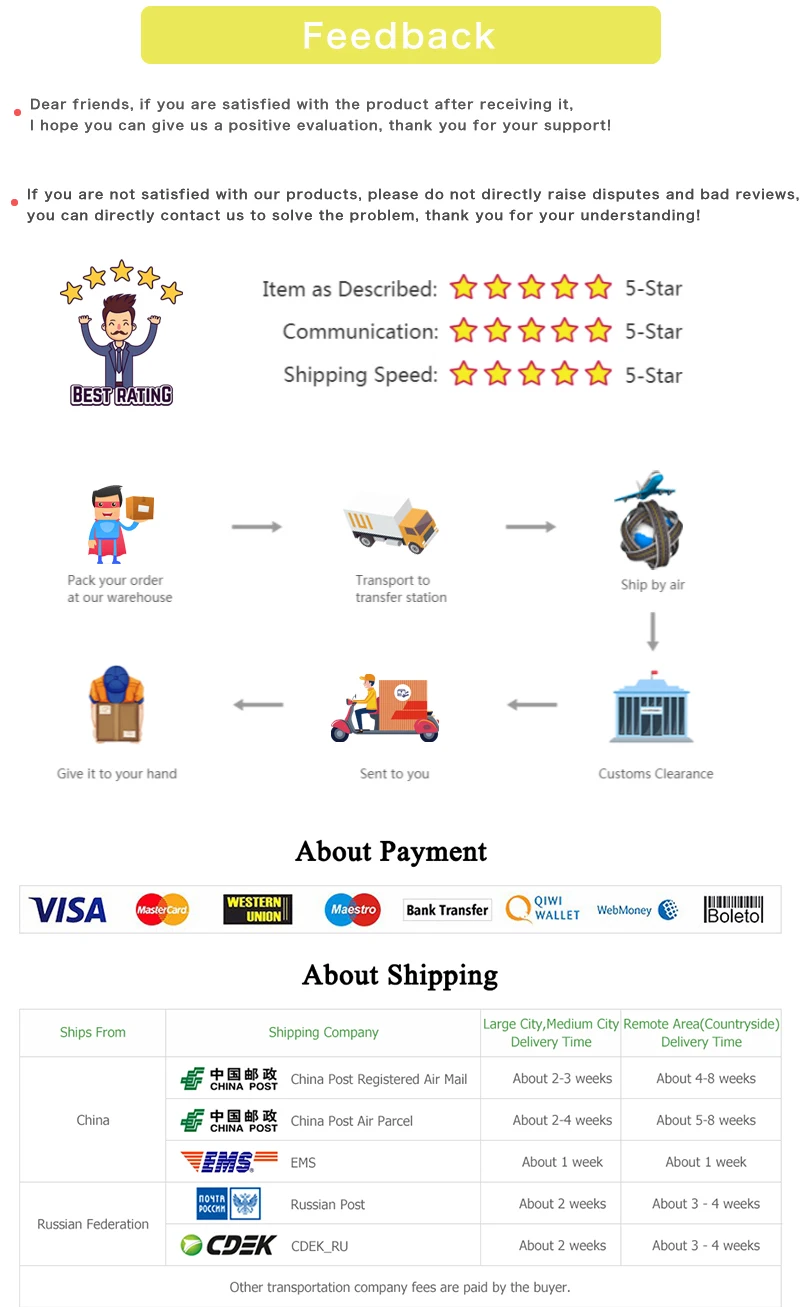 If you are not satisfied after receiving it, you can contact us to deal with it, please do not directly raise disputes and bad comments. We have an excellent after-sales team and can return and exchange goods. If you submit disputes and bad reviews, we cannot provide you with after-sales service, I hope you can understand。At the same time, we also cherish the cooperation with every customer