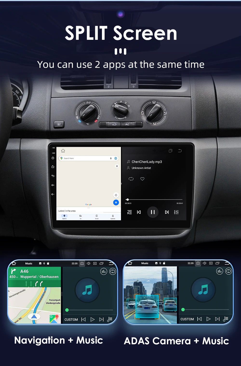 Split Screen : You can use 2 apps at the same time (such as: Navigation + Music , ADAS Camera + Music ,etc.)