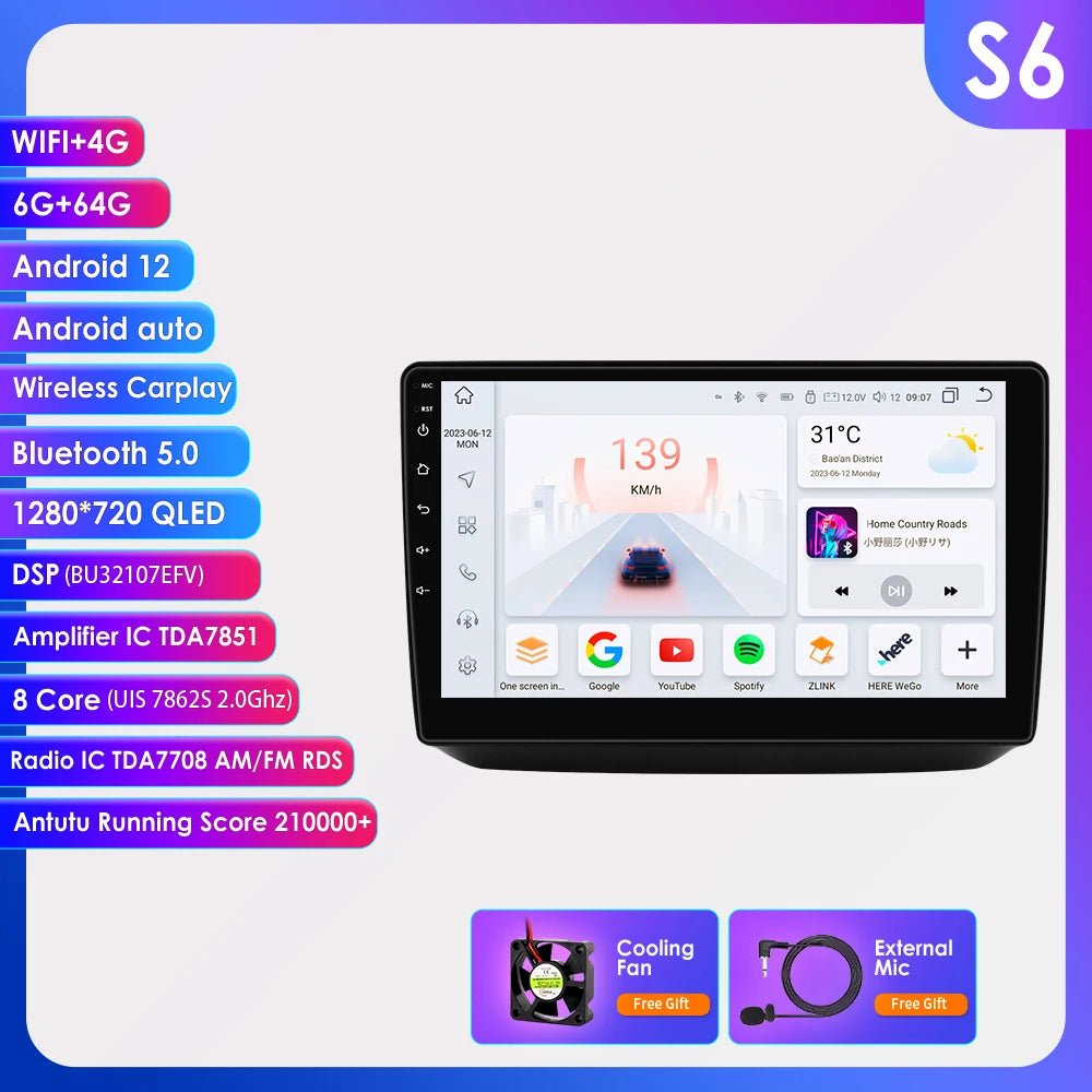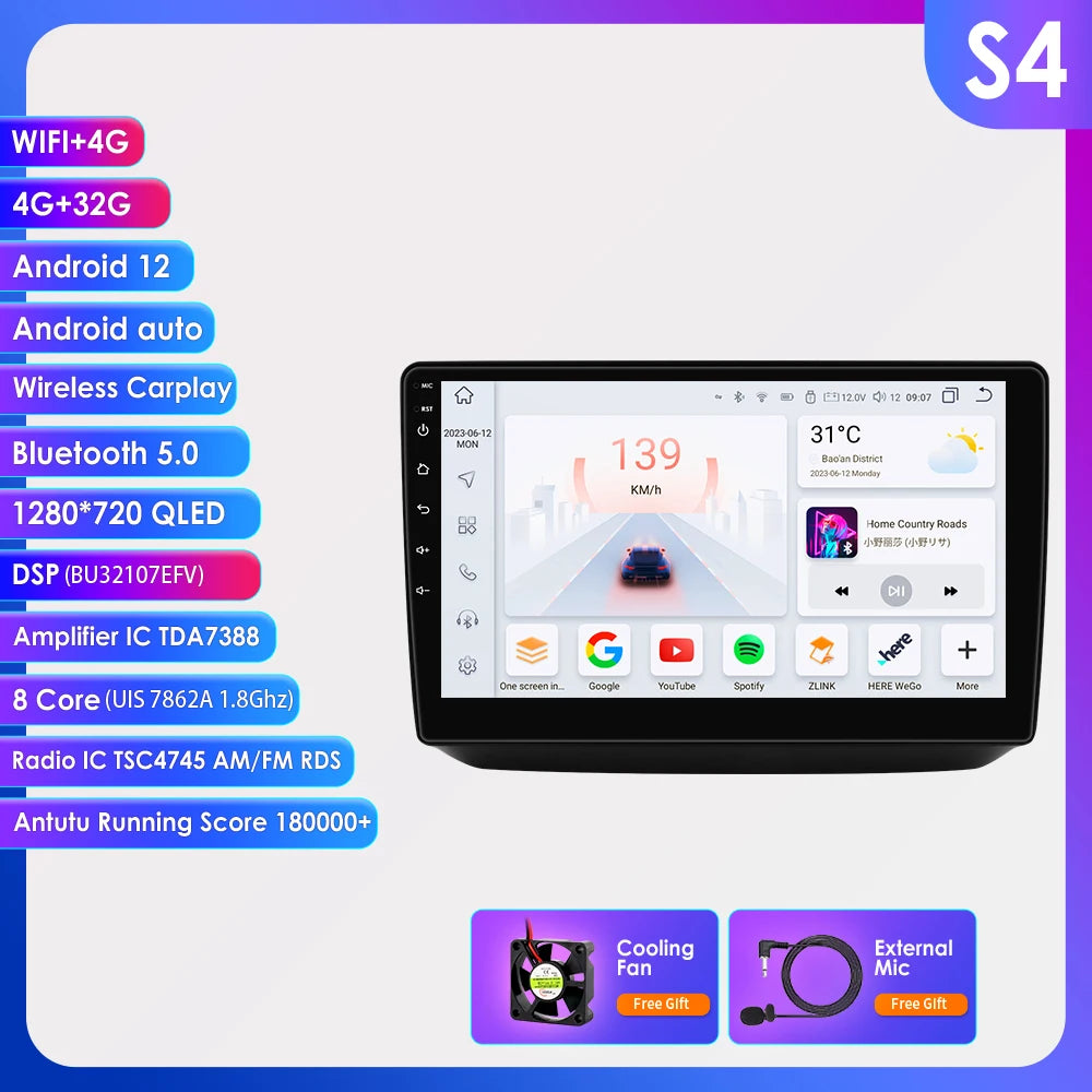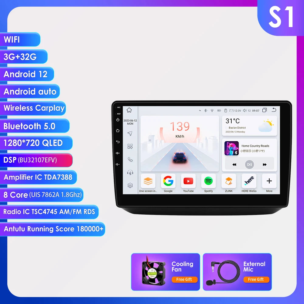 -----> Basic functions: Android 12 + 10.1 inch / 10.33 inch Display Screen + Quad Core 1.2GHZ (Eight core UIS 7862A 1.8Ghz / UIS 7862S 2.0Hhz optional)+ DDR3 1GB Flash (2GB/3GB/4GB/6GB/8GB optional) + 16 GB Memory (32GB/64GB/128GB optional) + WIFI (4G Network optional)+ Mirror link+ Steering Wheel Control + RDS+DSP(optional)