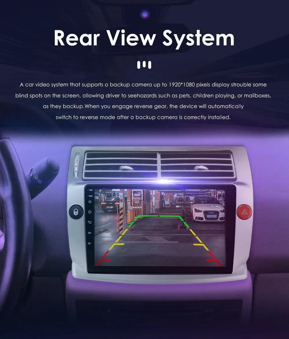 Rear View System(Rear View Camera needs to order separately): A car video system that supports a backup camera displays troublesome blind spots on a monitor , allowing a driver to see hazard such as pets ,children playing ,or mailboxes ,as they backup.