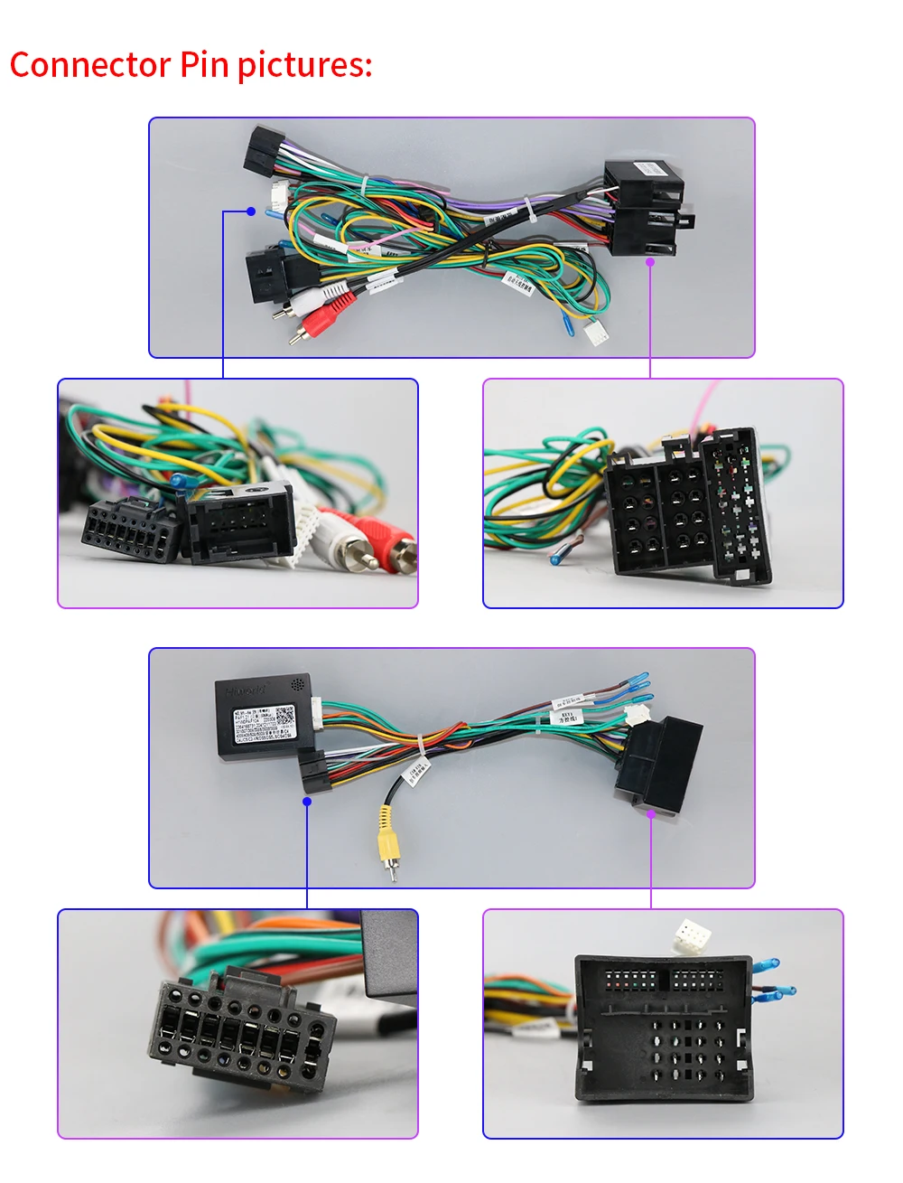 (Notice: if the connector pin to install with the car wires' cable is not the same as them which needs to contact the after-sale service to order special wire for installing)