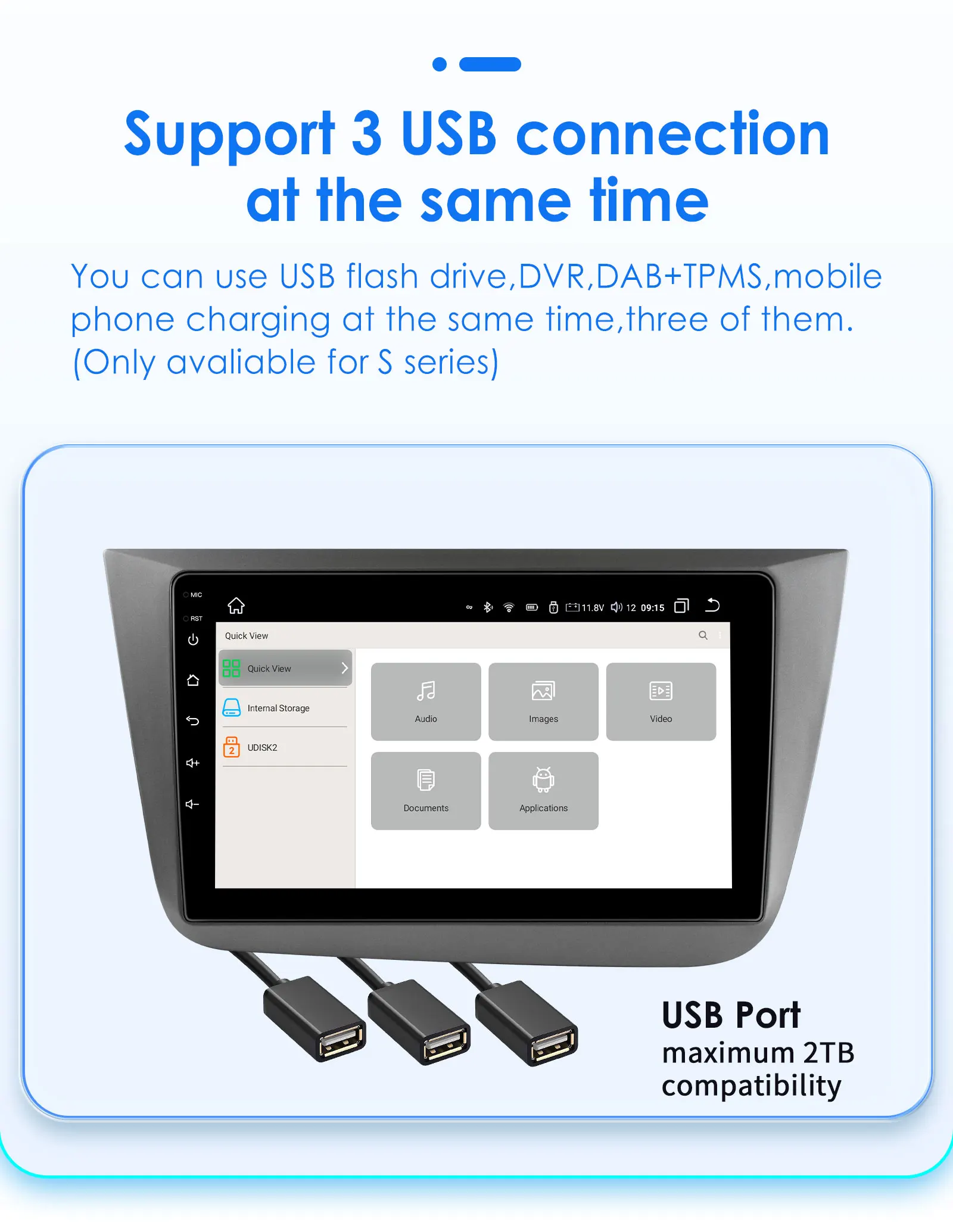 External Memory: USB port up to 2TB,this unit can play the video and audio files from your external device.