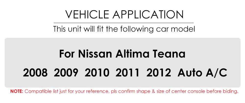 Compatible list just for your reference ,please confirm shape & size of certer console before bidding ,if size are not same then please do not order it to avoid wrong order .