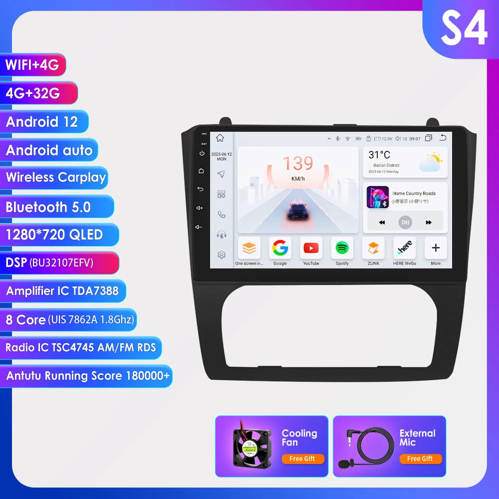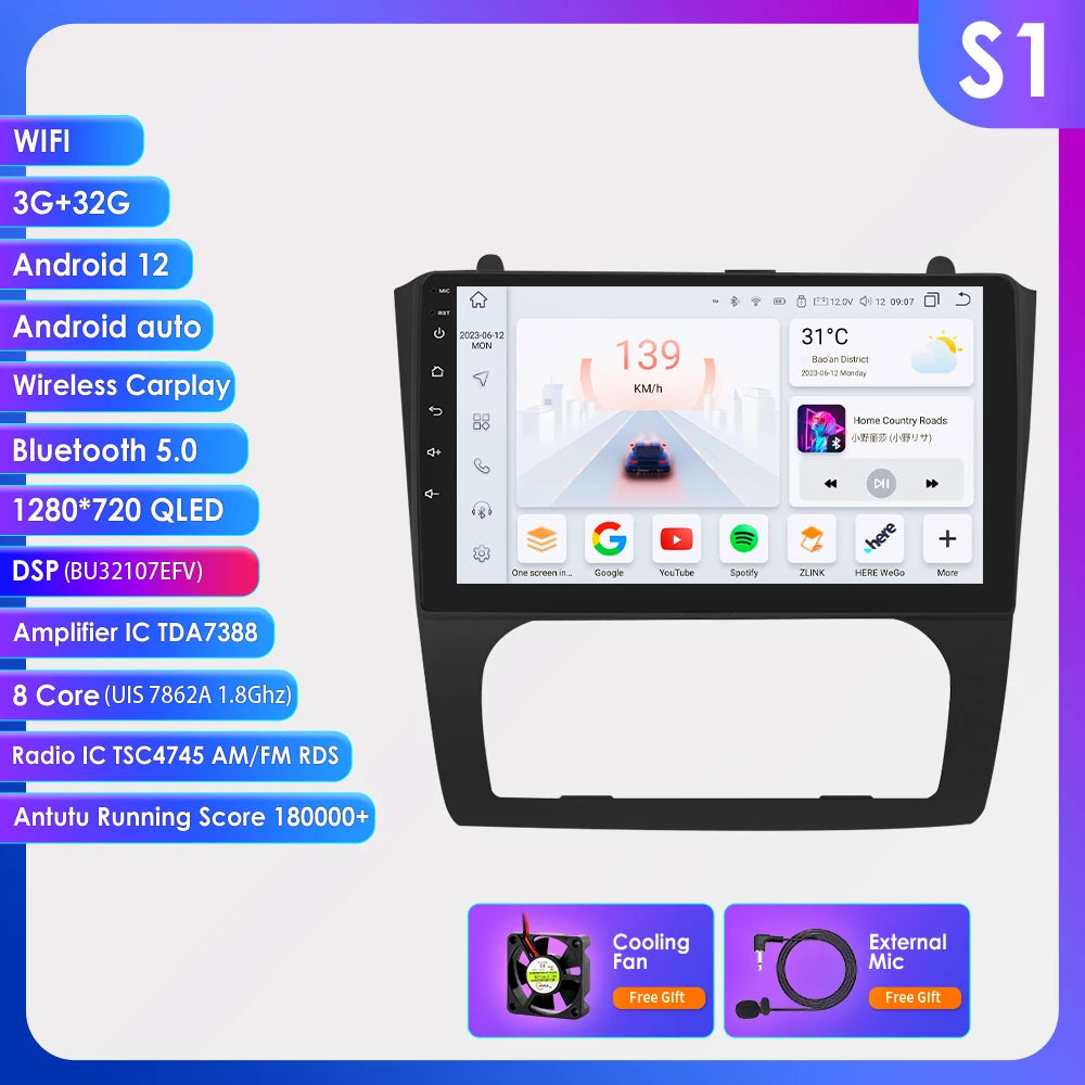 -----> Basic functions: Android 12 + 9 inch / 10.33 inch Display Screen + Quad Core 1.2GHZ (Eight core UIS 7862A 1.8Ghz / UIS 7862S 2.0Hhz optional)+ DDR3 1GB Flash (2GB/3GB/4GB/6GB/8GB optional) + 16 GB Memory (32GB/64GB/128GB optional) + WIFI (4G Network optional)+ Mirror link+ Steering Wheel Control + RDS+DSP(optional)