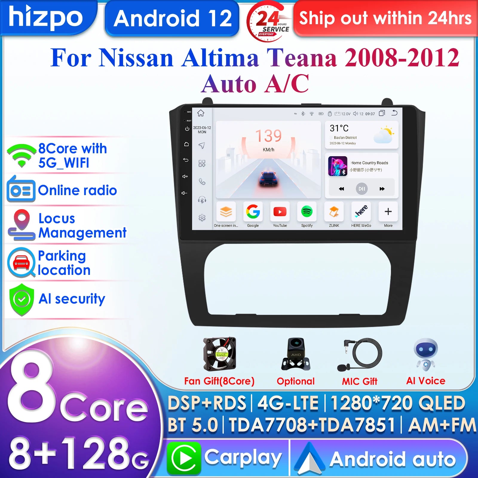 Hizpo 4G 9''AI Intelligent Systems Wireless CarPlay Android Auto Radio for Nissan Altima Teana Car Multimedia GPS 2din Autoradio