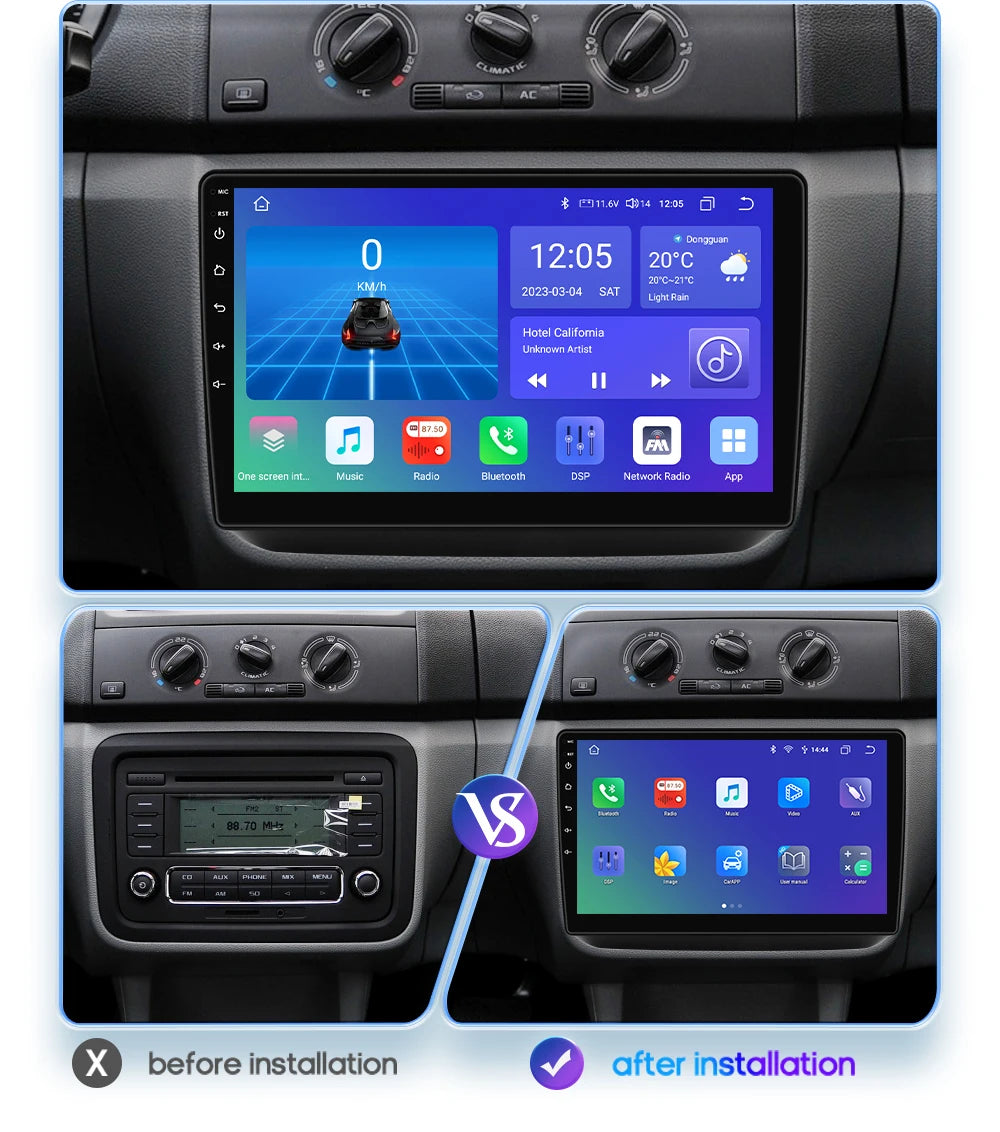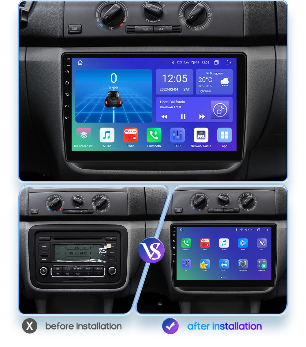 Larger display, Android system, more functions. The frame is customized according to the original car. Easy to install.