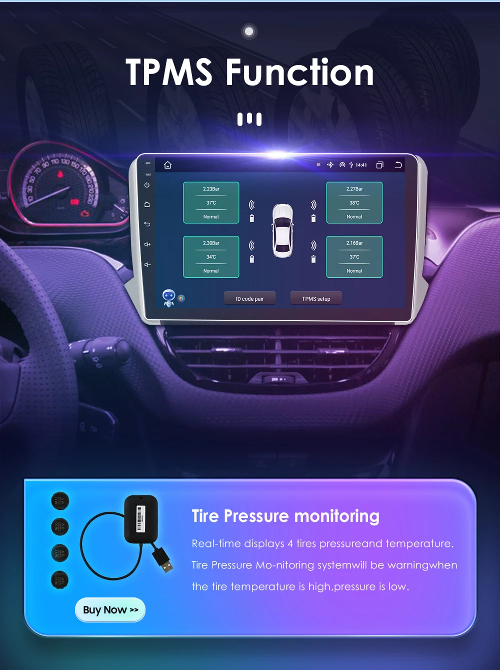 Support USB TPMS, real-time feedback of your tire status, more and more national automobile manufacturing standards require vehicles to be equipped with tire pressure alarm devices. The importance of tire pressure warning devices is evident. . You can click the image below to buy it.
