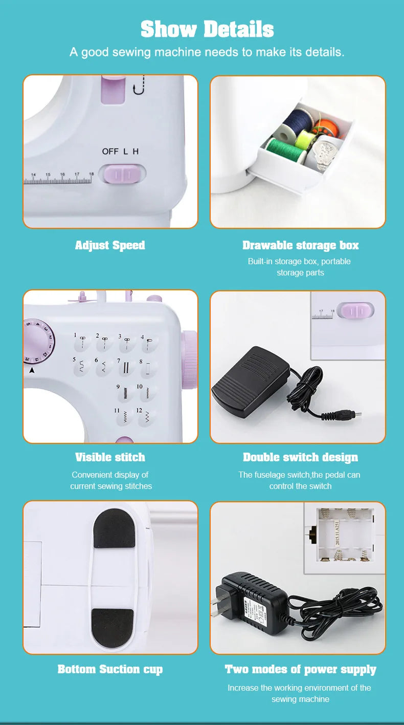 Household Portable Sewing Machine Desktop Handheld Small Electric Multifunctional DIY Garment Sewing Machine Lock Edge 505A