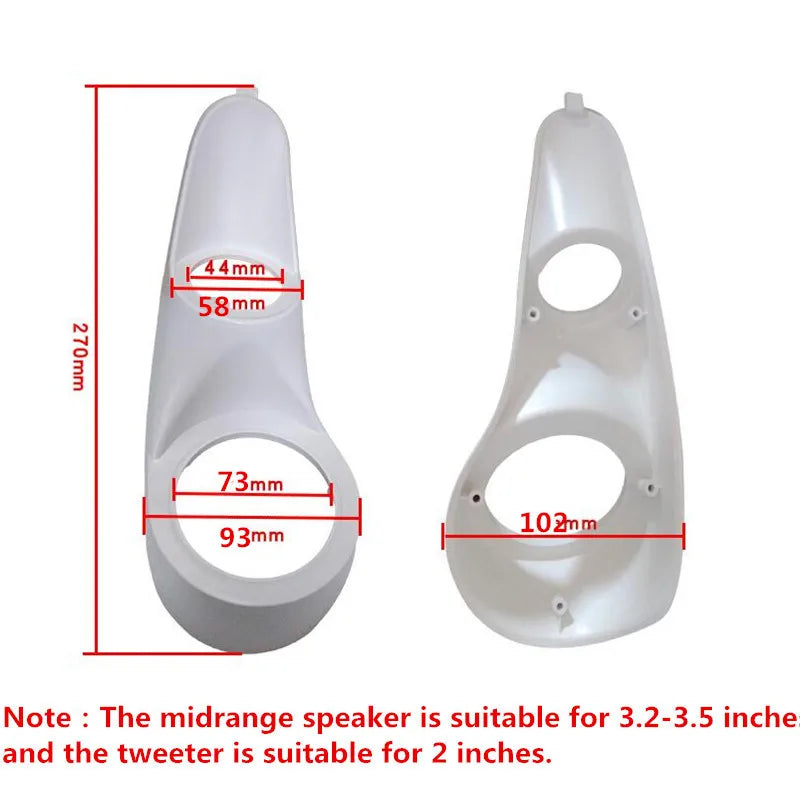 The midrange speaker is suitable for 3.2-3.5 inches, and the tweeter is suitable for 2 inches.