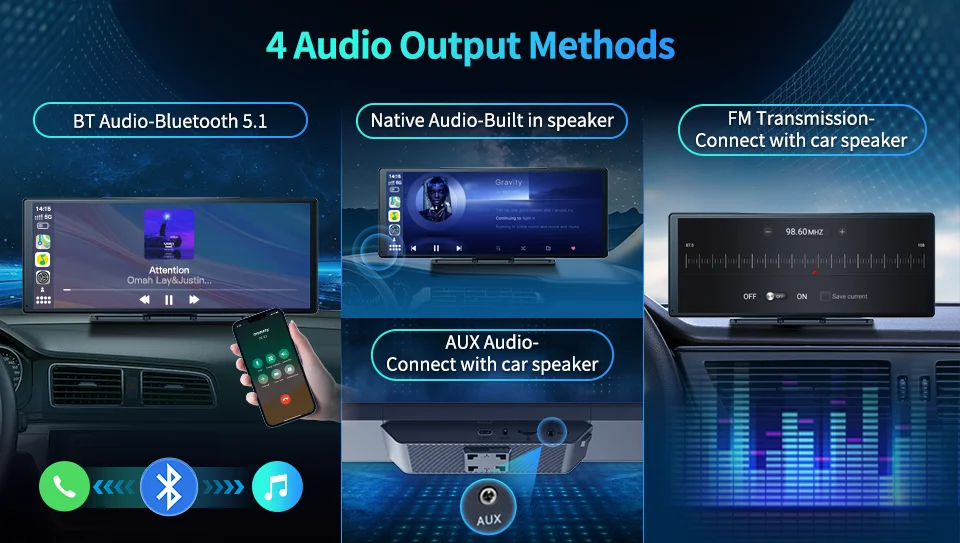 Connect phone with radio via Bluetooth, support hands-free calling, listen to music, and phone book function.