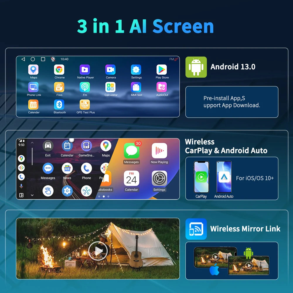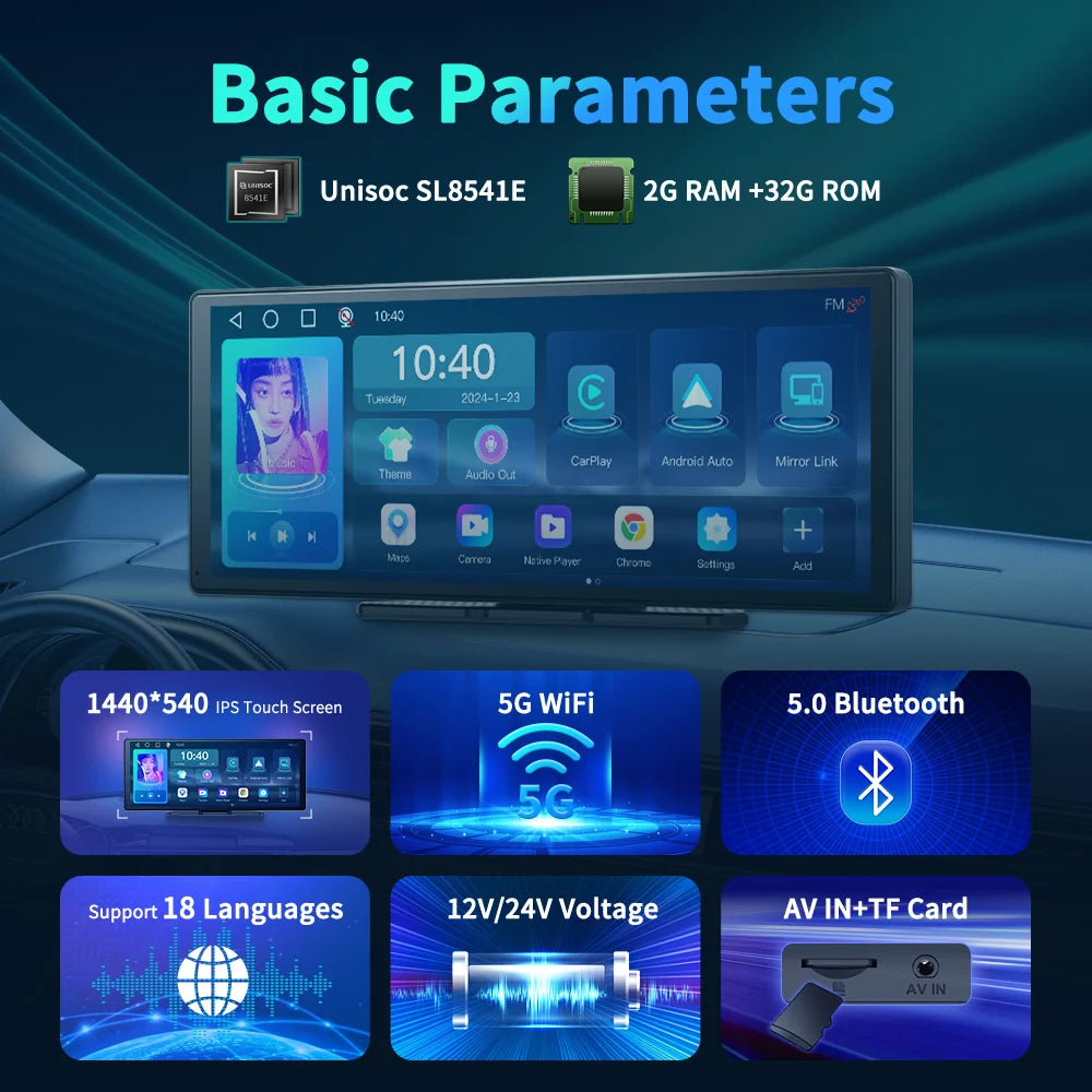 Support 1080P full screen reverse image and with guide line.When reversing, the system will automatically turn on the high-definition reversing camera at the rear of the car and clearly display the state of the rear of the car on the reverse IPS screen, so that you can accurately grasp the road conditions at the rear. The preview angle can be adjusted by sliding the left side of the screen to control the position of the guide line.