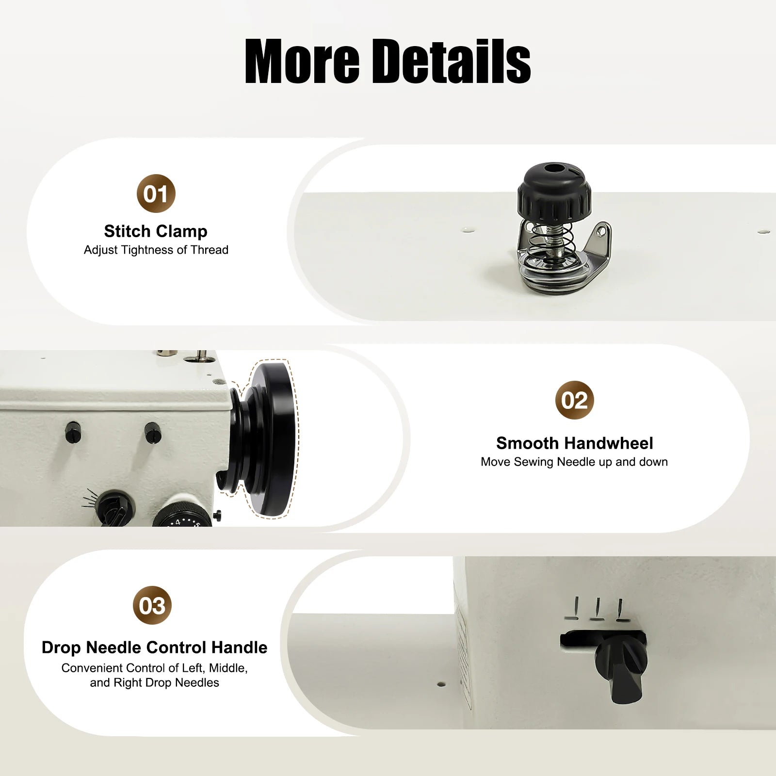 Drop Needle Control Handle: This allows for convenient control of the left, middle, and right drop needles.