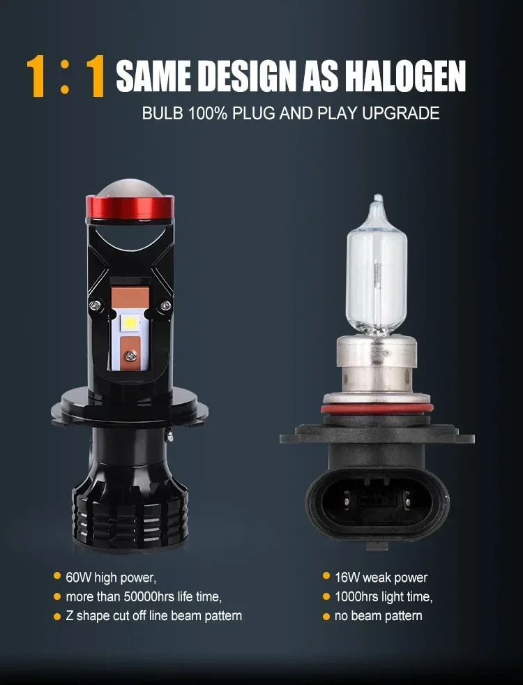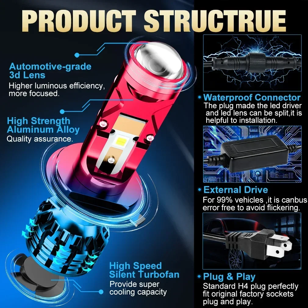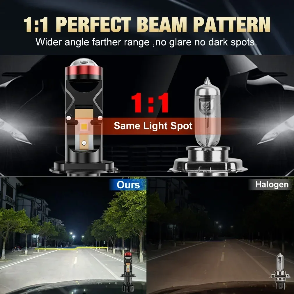 Intelligent Decoding of Automotive LED Headlights Laser Lens H4 H7 Dual Beam High Low Beam Integrated Motorcycle LED Headlights