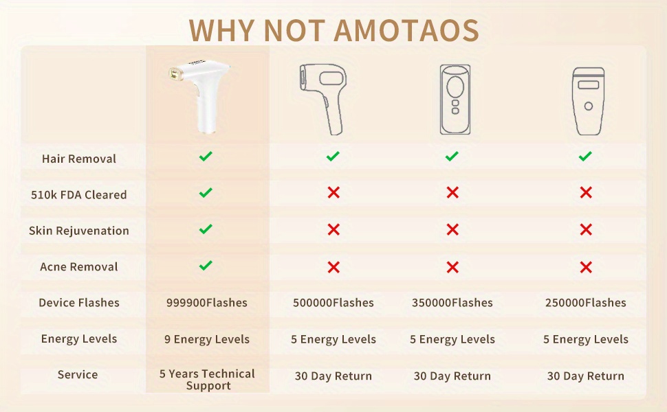 Safe & Effective & Fast】Our laser hair removal device is upgraded with a large light outlet of 5cm² and adjustable automatic continuous light mode for fast hair removal to achieve safe and effective fast hair removal. The laser hair removal device uses advanced IPL technology to break the hair regeneration cycle, achieve permanent hair removal and inhibit hair growth.The upgraded 5cm²large light outlet makes the whole body hair removal 30% faster than other hair removal devices.