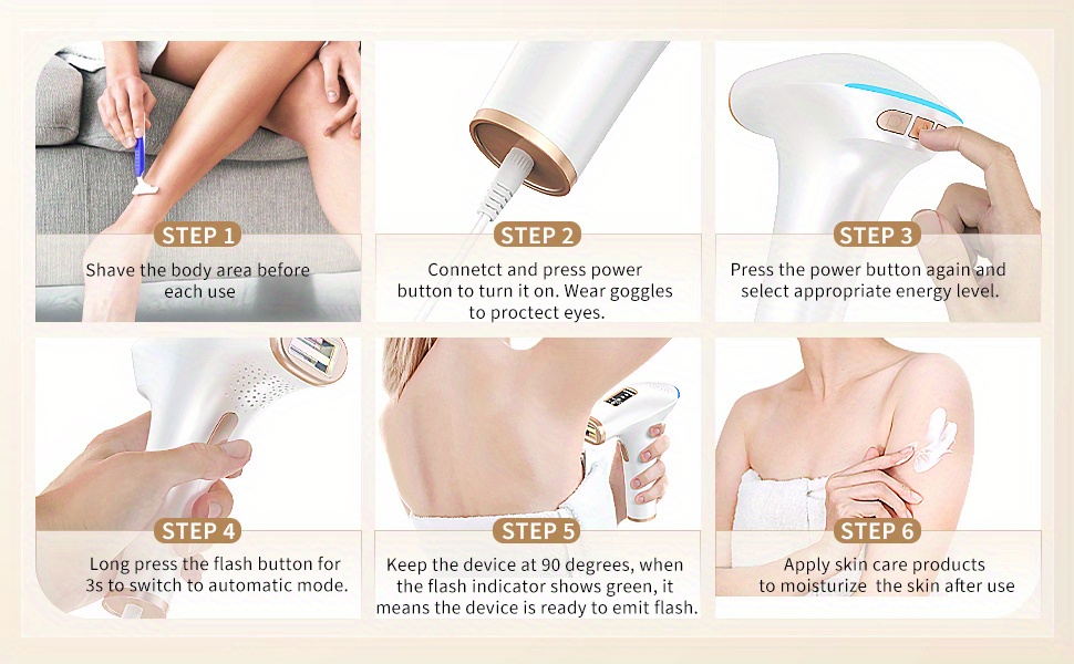 【9 Adjustable Energy Levels】Our laser hair removal device has 9 adjustable energy levels ,9 adjustable energy levels to accommodate different skin sensitivities, providing different levels of the most accurate, comprehensive and effective treatment experience. The higher the energy level the better the hair removal effect, please start from low to high.