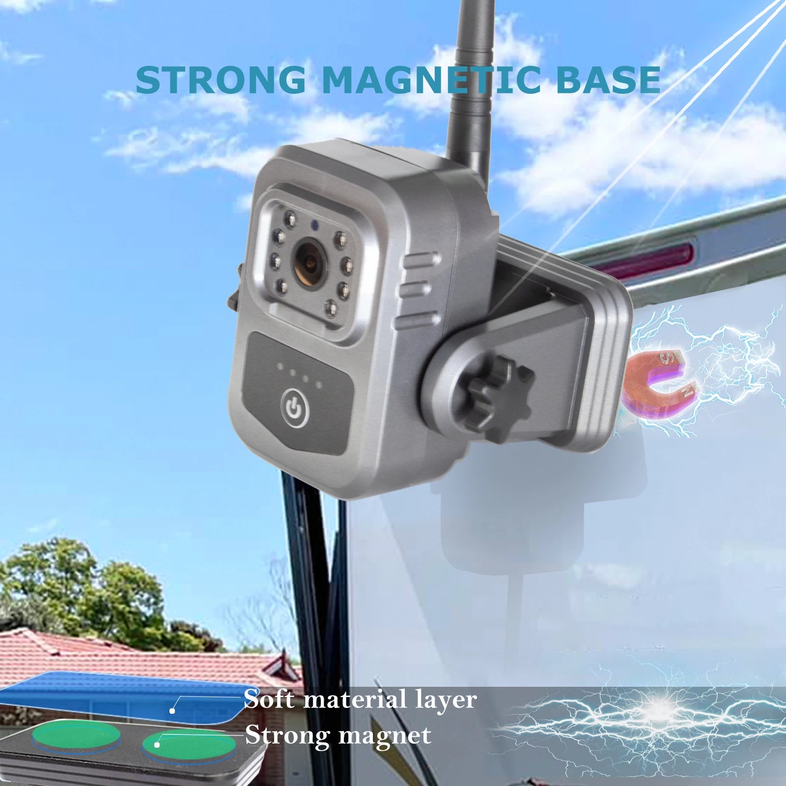 With a powerful magnetic base. This rear view camera features a powerful magnetic base so that you can attach it to anywhere on your vehicle you want.
