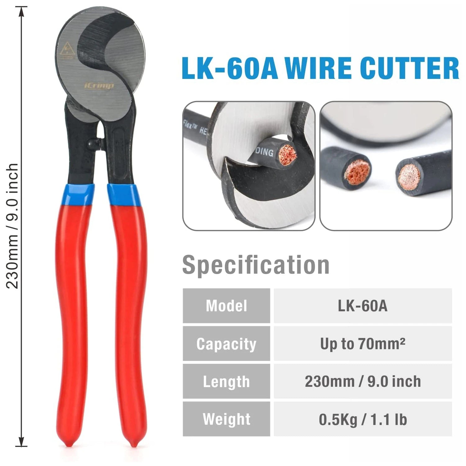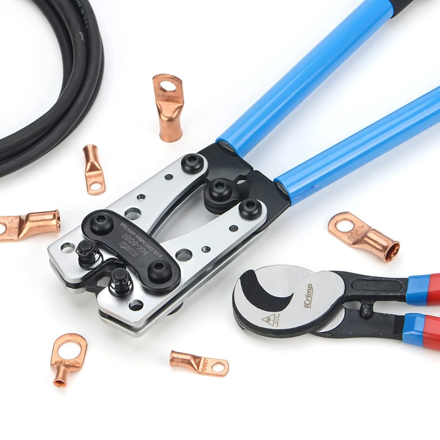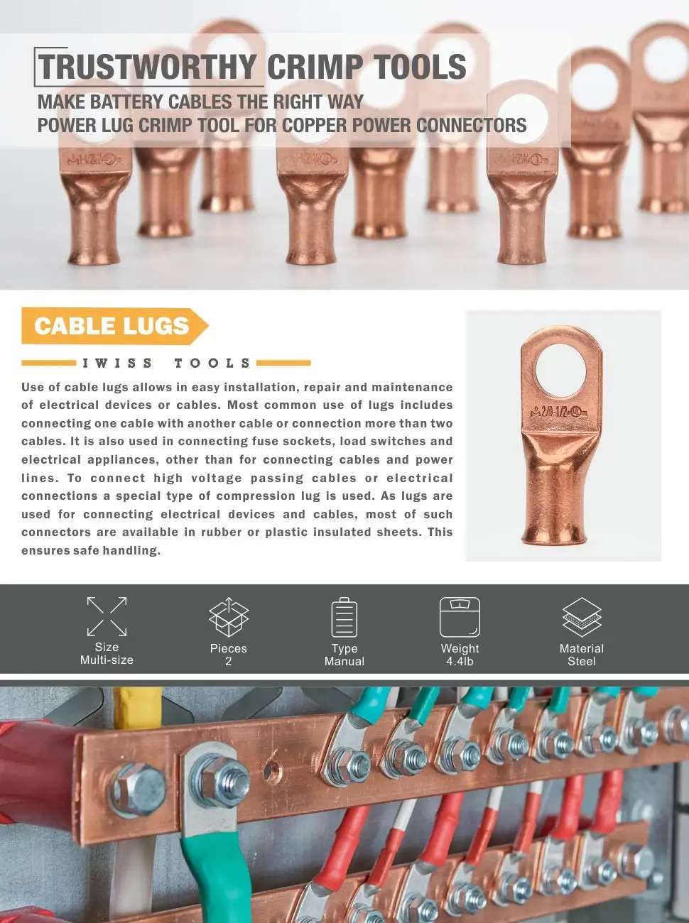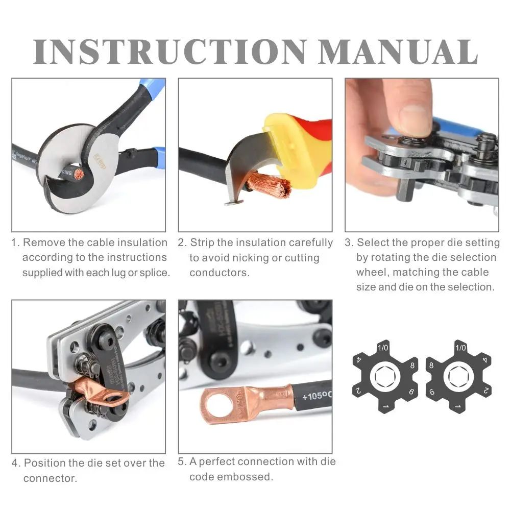 IWISS Cable Lug Crimping Tool for Heavy Duty Wire Lugs,Battery Terminal,Copper Lugs AWG 8-1/0