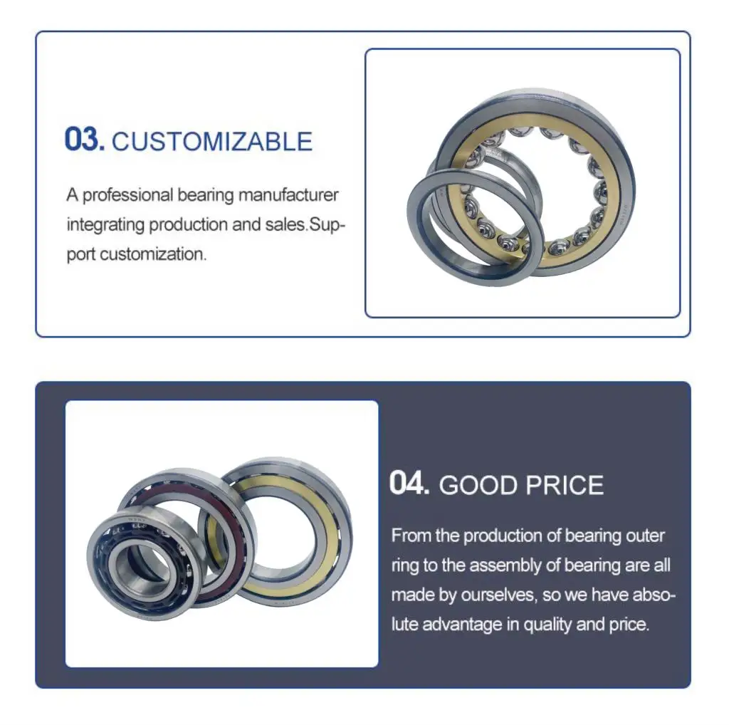2.Angle contact ball bearings are widely used in mechanical industry,like in various machinery such as metallurgic machinery,mining machinery,paper making machinery,exile machinery,etc.