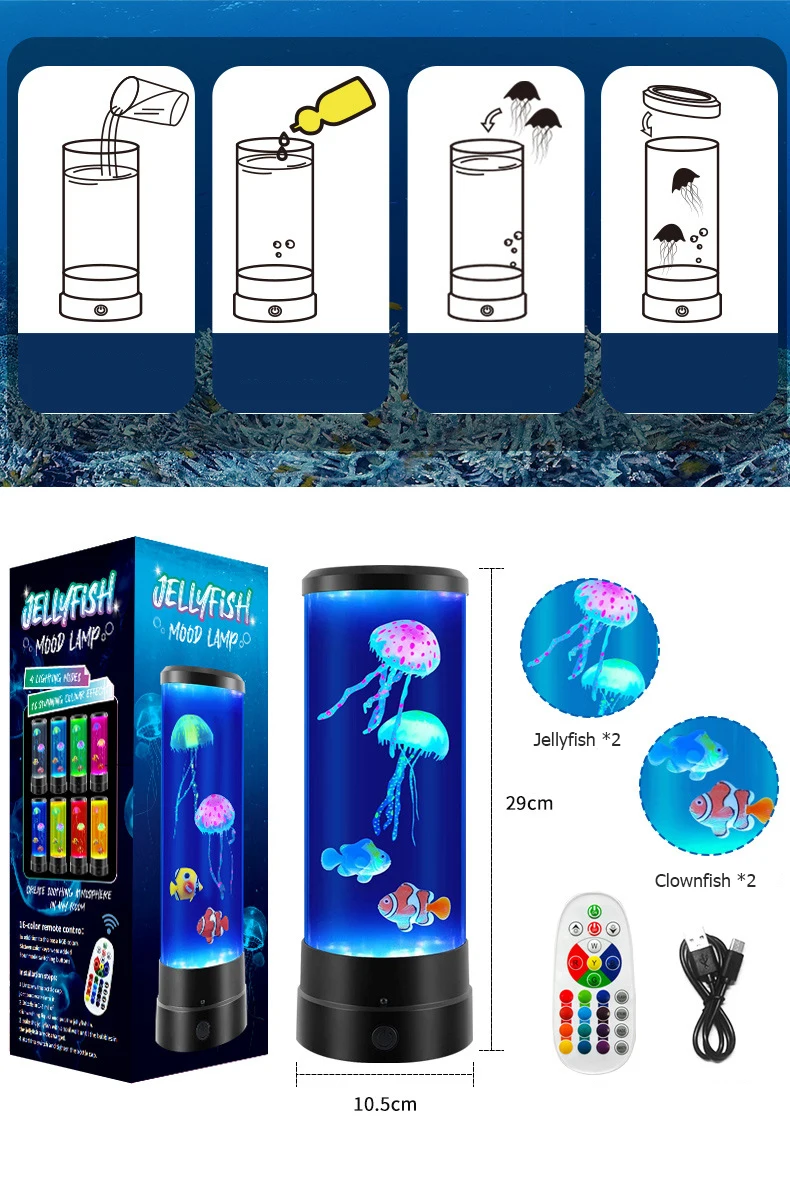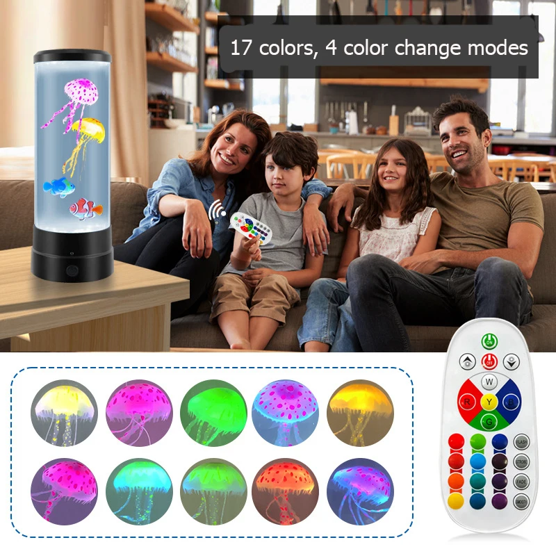 Jellyfish Lamp LED Aquarium Night Light Remote Control 17 Colors Changing Home Decoration Lighting Atmosphere lamp Gift for Kids
