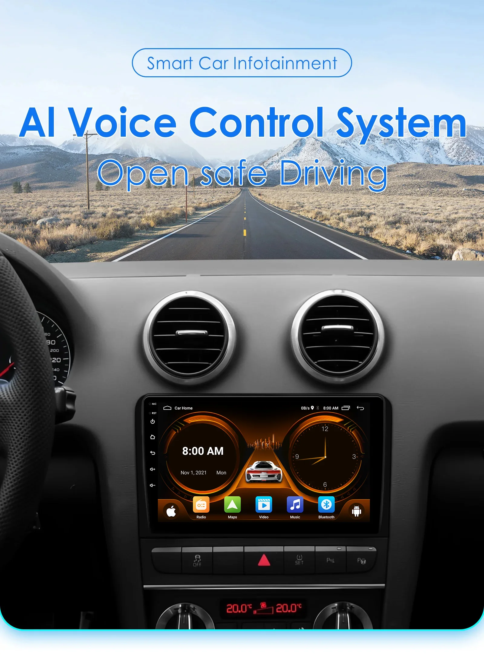 JIUYIN 9 Inch Car Radio 2 Din Android 12 Stereo With Screen For Audi A3 8P 2003-2012 Carplay Intelligent System Multimedia Wifi