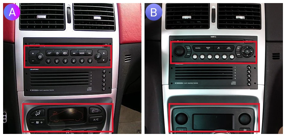 1. If the center console of your car is the same as the picture A, and the original car has no steering wheel control buttons, please buy A, it is suitable for your car.