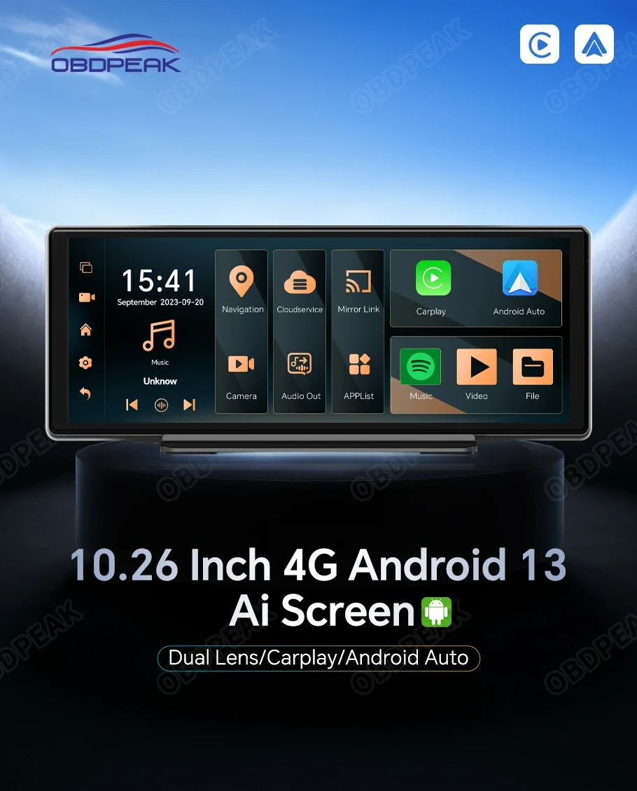 The OBDPEAK K50 has a crazy built-in 3 system, Android 13 system/Carplay system/Android Auto system, and has added an Dual Lens to meet all your car driving needs!