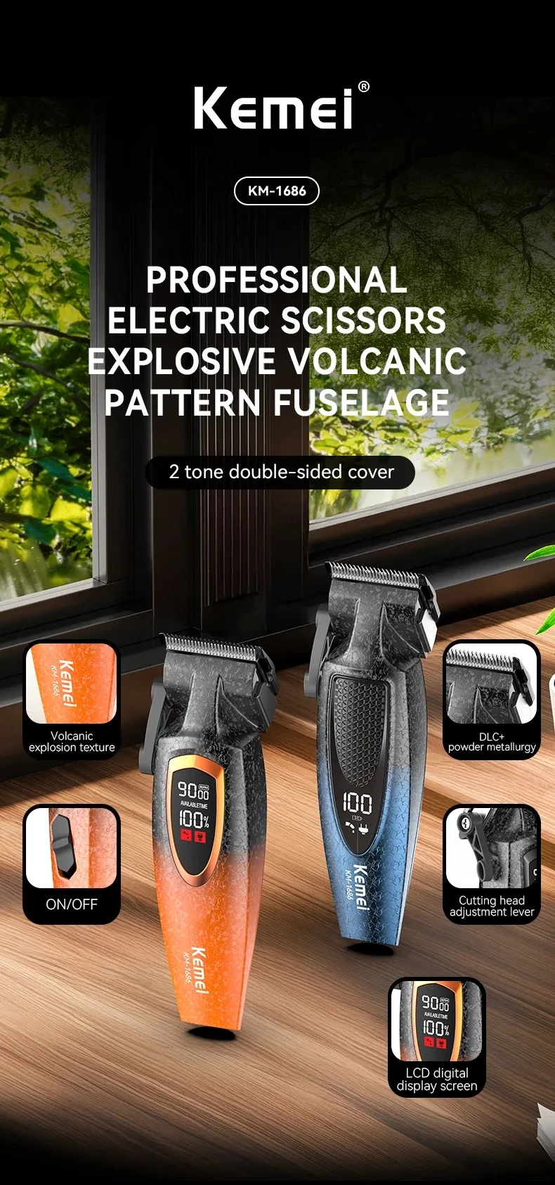 Kemei 1686 Professional 9000RPM Hair Clippers Electric Cordless Hair Trimmers DLC Blade Hair Cutting Machine Hair Cutter for Men
