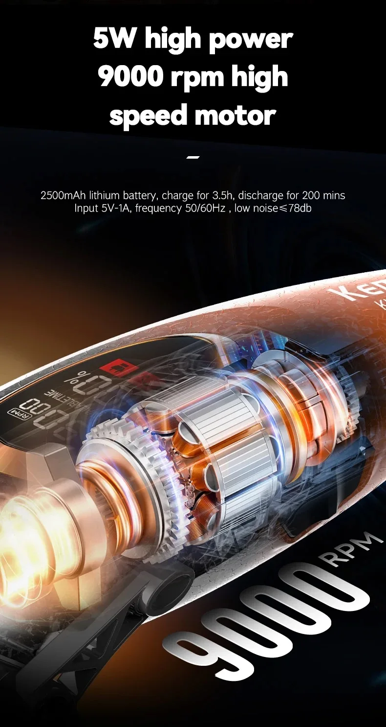 ★High-Performance 9000RPM Motor: Powered by a robust motor spinning at an impressive 9000 revolutions per minute (RPM), the KM-1686 delivers unparalleled cutting efficiency and speed. This high-torque performance ensures a seamless, effortless glide through even the thickest hair types, reducing friction and heat build-up, thereby minimizing skin irritation and maximizing cutting precision.