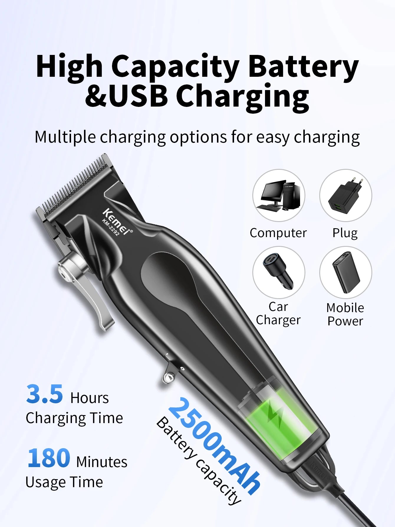 Kemei 2292 Professional Electric Hair Trimmer Rechargeable Barber Hair Clipper For Men Beard Hair Cutting Machine  Professional