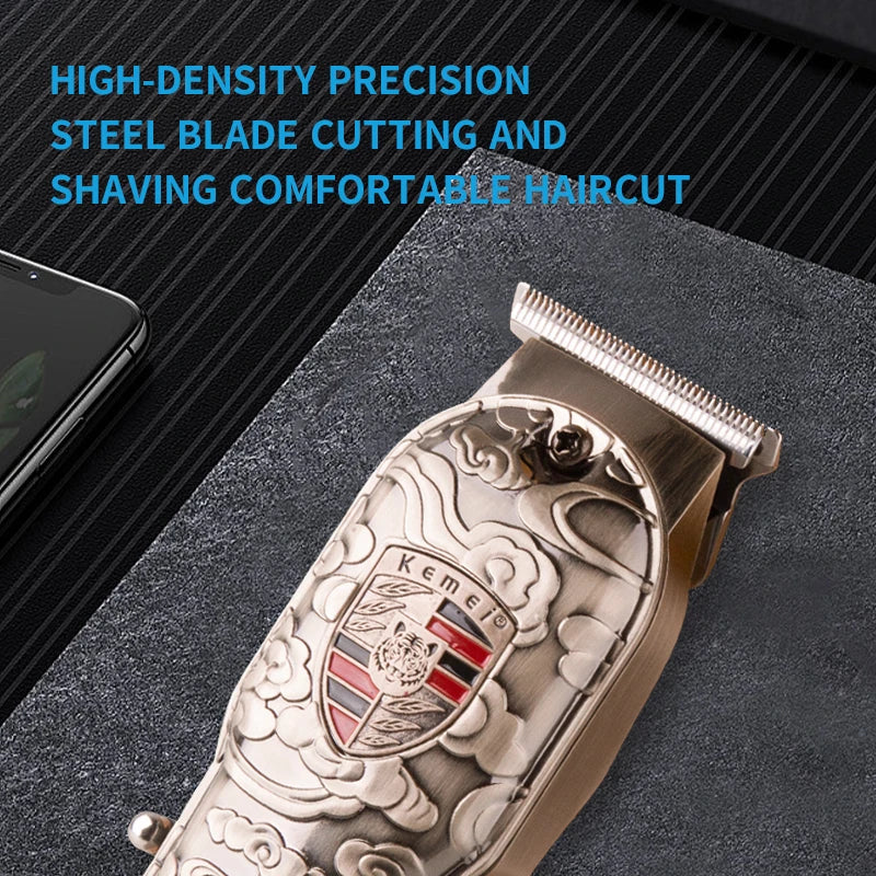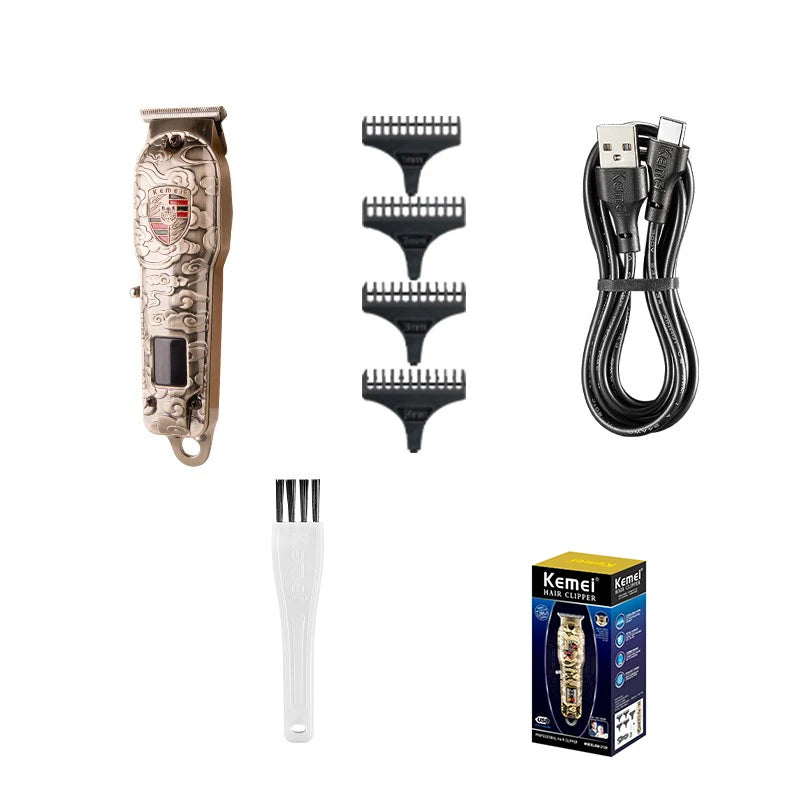Kemei Cordless Electric Hair Trimmer Men Rechargeable Hair Clipper Barber Hair Cutting Machine with 4 Limit Combs Metal Body