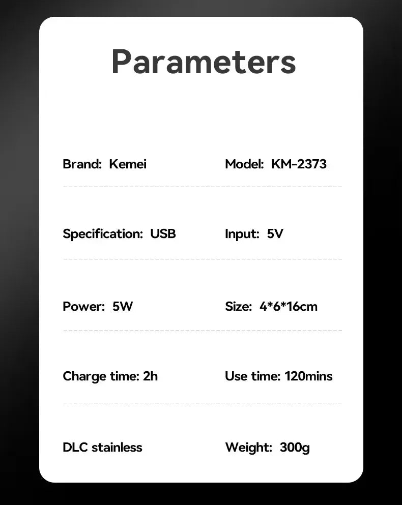 Function: wet haircut,dry haircut,Fast Charging,Charging indication