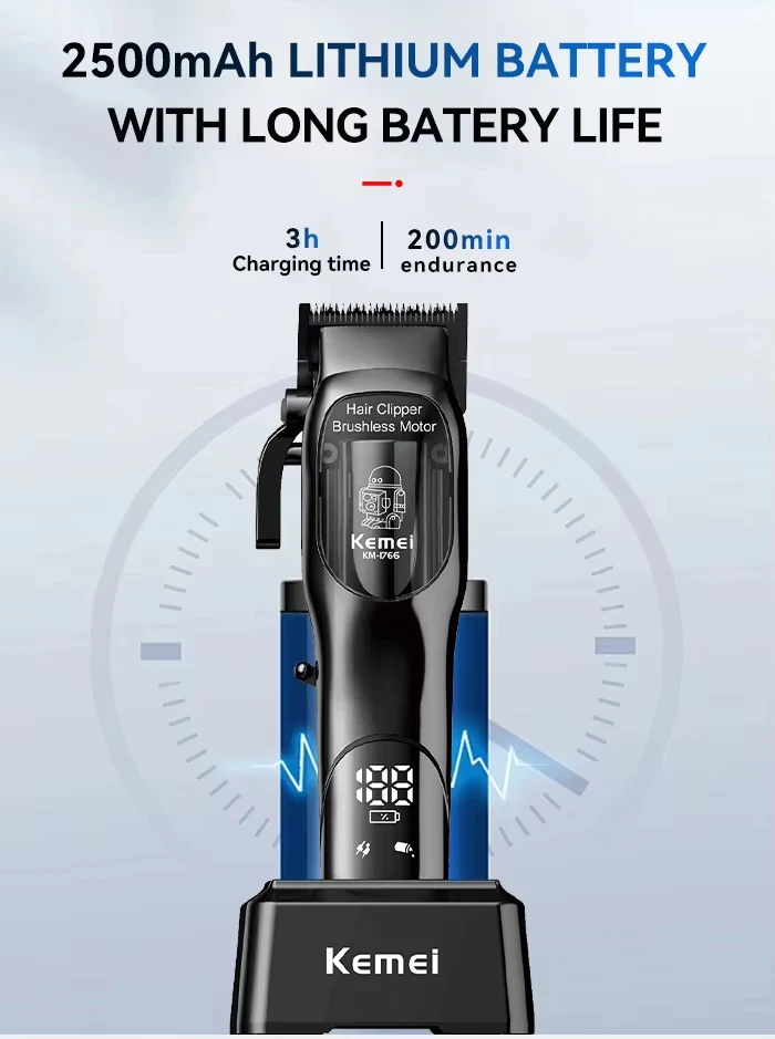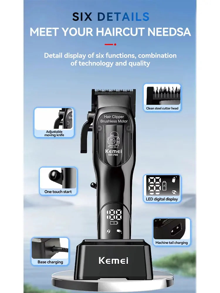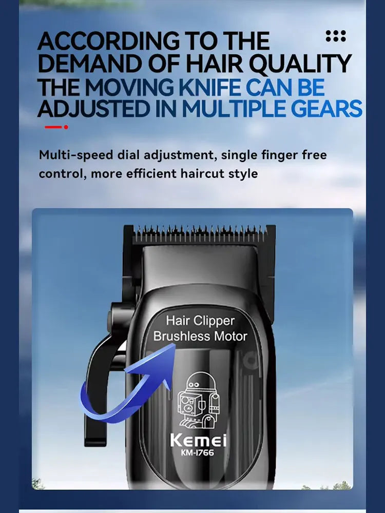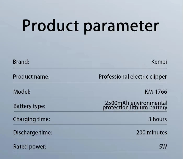 Kemei KM-1766 Professional Electric Hair Clipper Rechargeable Trimmer Men&