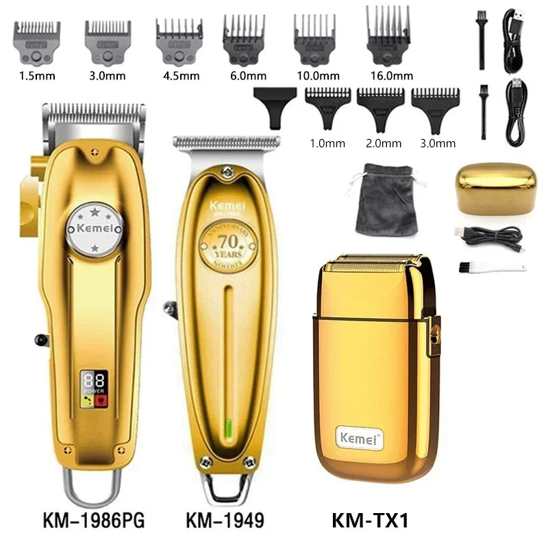 Kemei KM-1949 KM-1986PG KM-TX1 Professional Finishing Hair Clipper Kit Electric Cordless Hair Trimmer Hair Cut Machine for Men