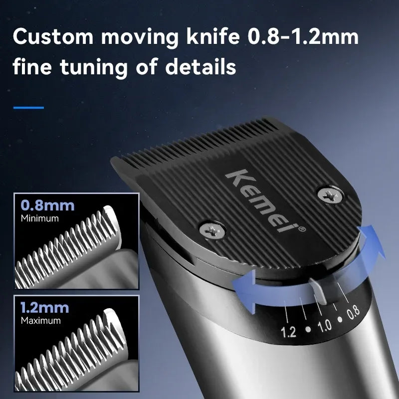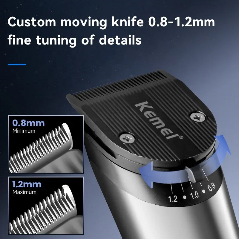 Function: electric length adjustment,wet haircut,dry haircut,Automatic power selection based on bristle density,Washing knives under water,Fast Charging,Charging indication