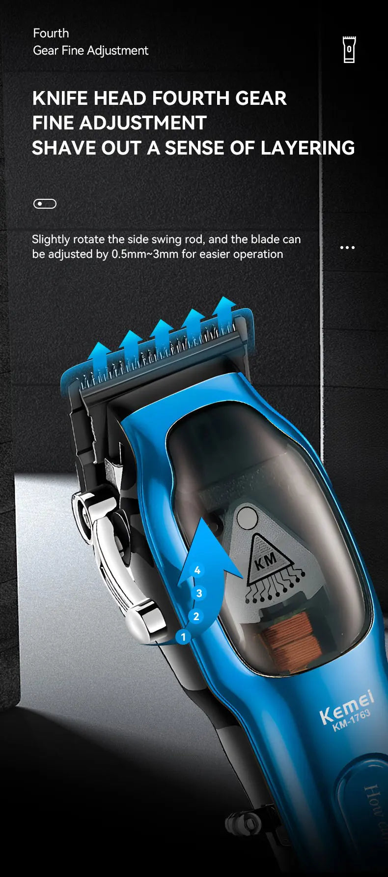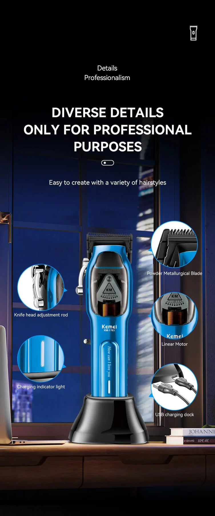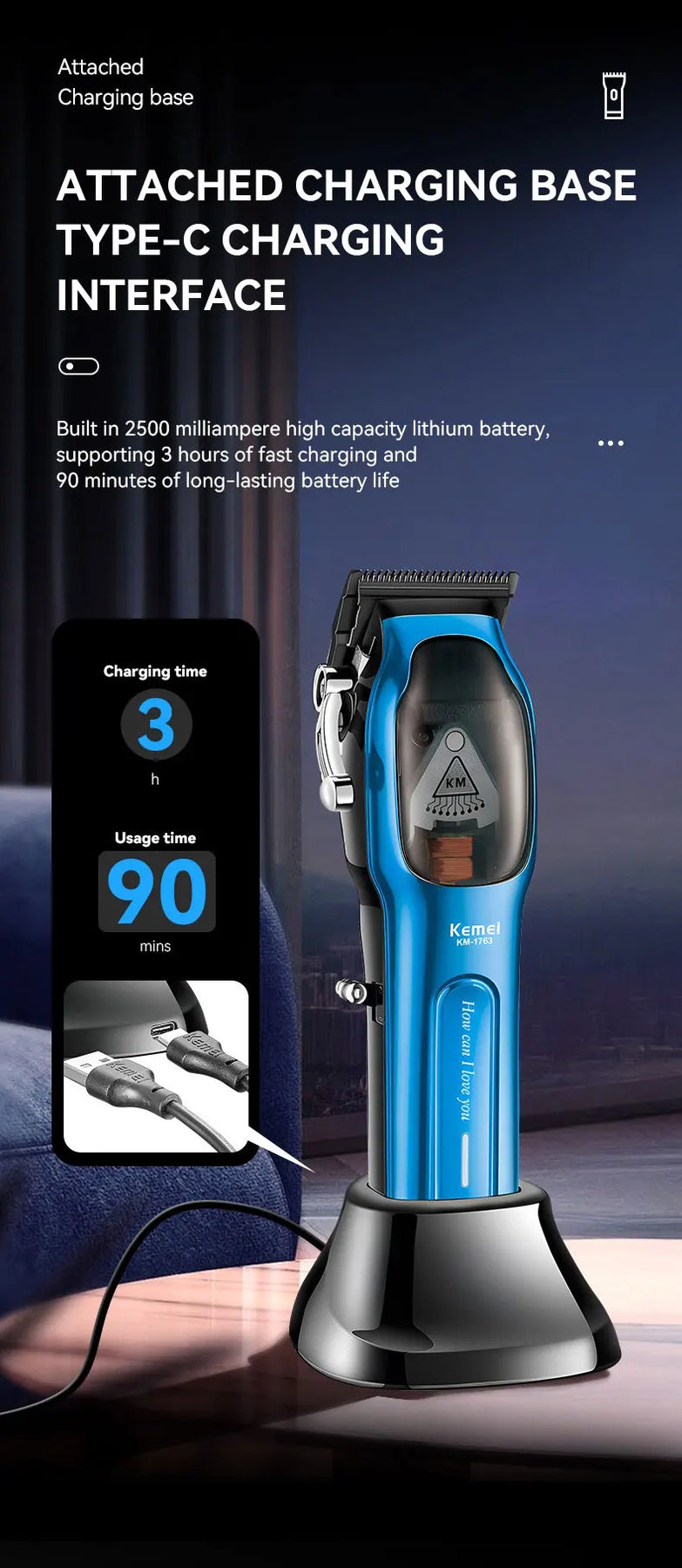 【CORDLESS&CORDED】Kemei Hair clipper can be with cord or cordless which is super convenient for self-cutting. USB charging 3Hours - One full charge Last up to 120 minutes of use.When the power of the hair clipper is used up,This hair clipper supports plug and play.