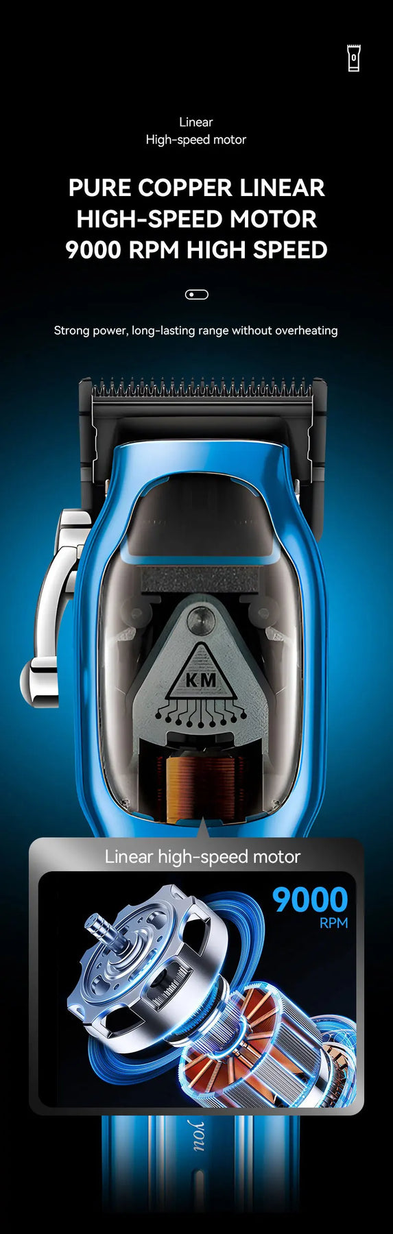 magenetic high speed motor, 10w 9000𝐑𝐏𝐌 𝐌𝐨𝐭𝐨𝐫 for barber shop use, very powerful, will not pull hair. This is by far Kemei's most powerful machine