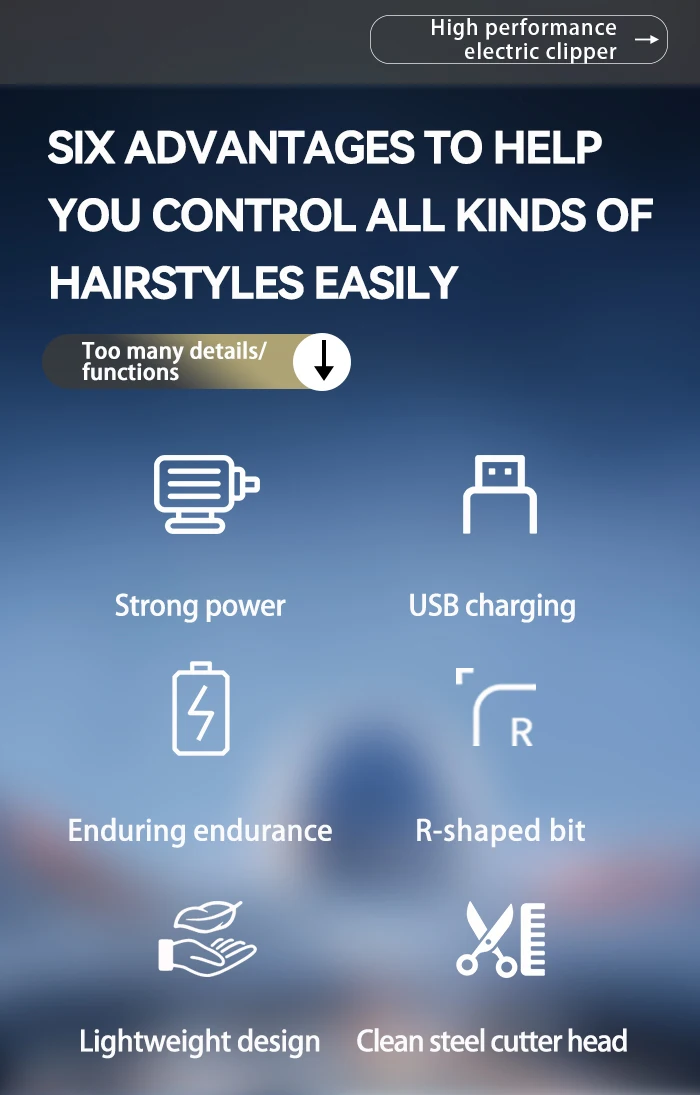 Function: wet haircut,dry haircut,Fast Charging,Charging indication