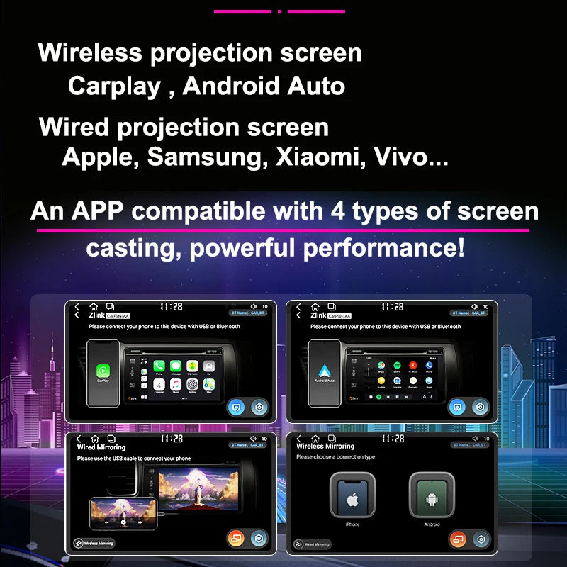 24. Wired: Android and Apple phones, using USB connection, can achieve car and machine interconnection; Wireless: Apple mobile phones can use wireless Carplay, Android mobile phones can use Android Auto to achieve mobile screen projection.