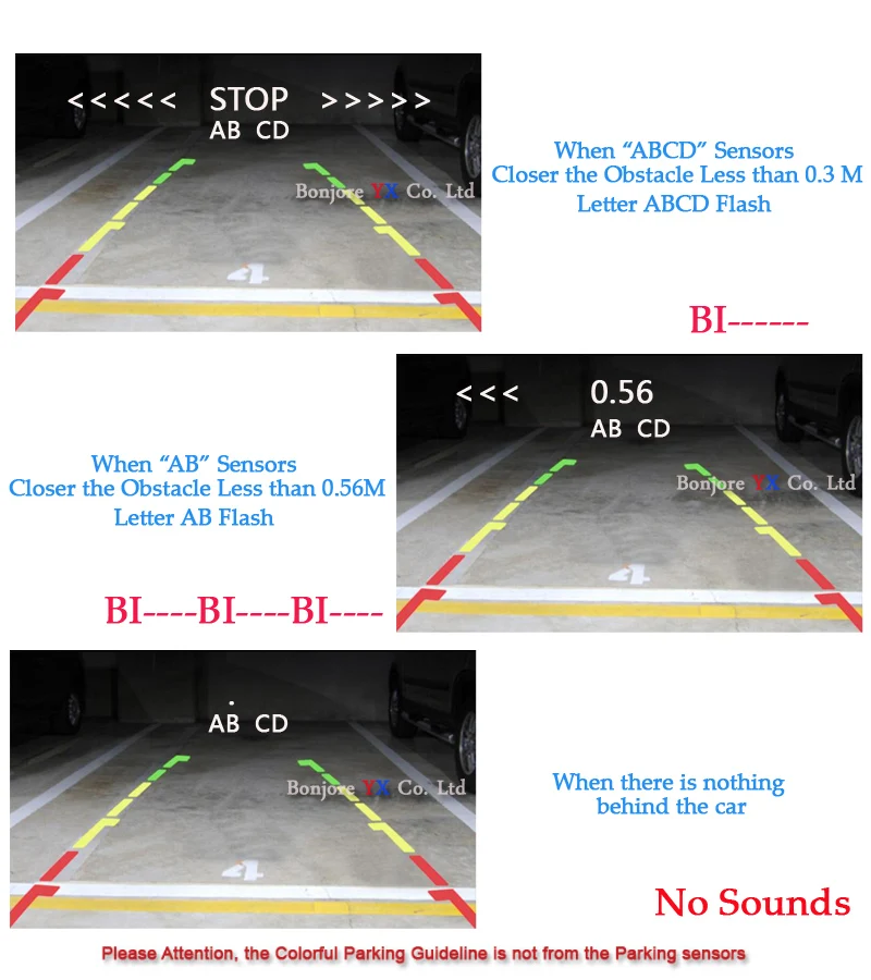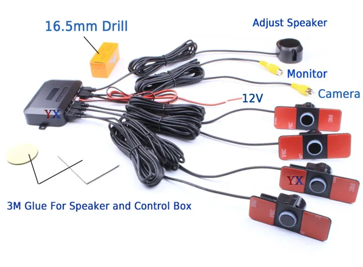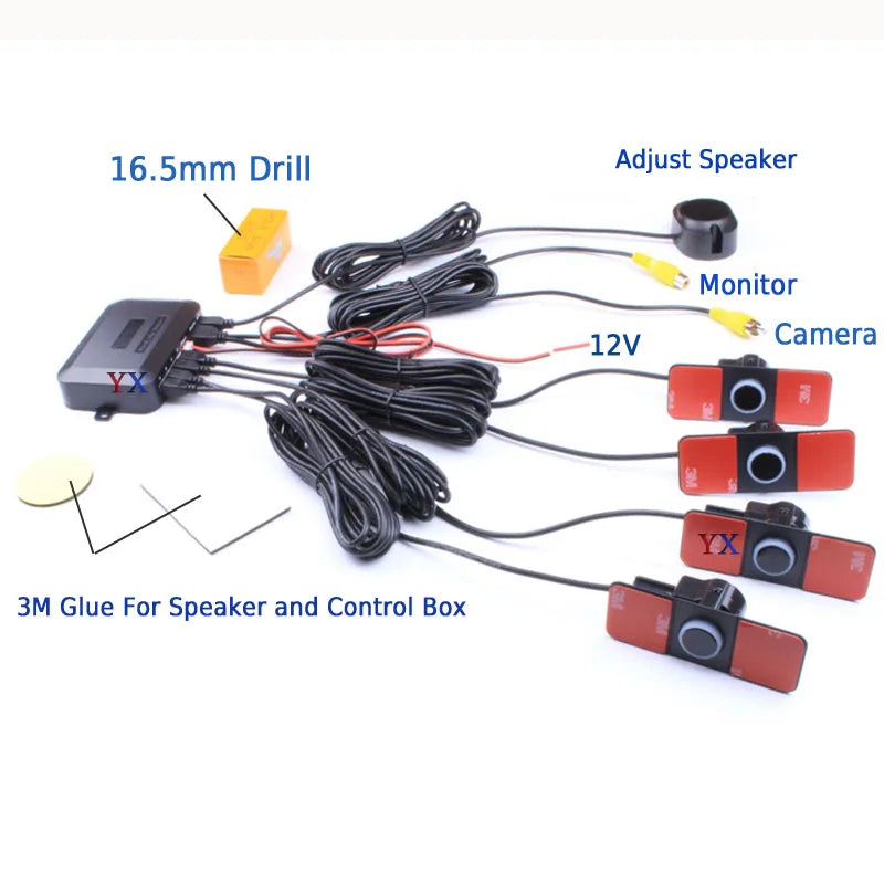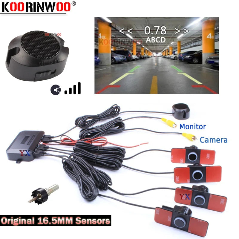 Original 4 Sensors Buzzer 16.5mm Car Parking Sensor Video Reverse Backup Radar Sound Alert Indicator Probe System 12V 7 Colors